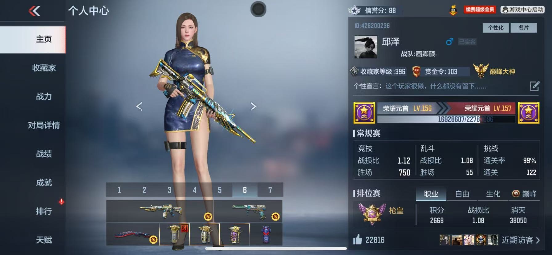 - PX_2101714-苹果QQ 历史总热力值:64494 粉装数量:6 特效枪数量:3 载具数量:1 王牌印记:9 历史最高段位:卓越王牌16星 套装数量:153 时装数量:611 枪械数量:213 战备数量:122 装备数量:265 载具:护世瑞兽 时装:套装-幻彩电音,套装-幻彩马卡龙,套装-星穹咏叹调,套装-烈焰拳霸,套装-缤纷油彩,套装-香水柠檬,套装-NV战队服,套装-SS10特训,套装