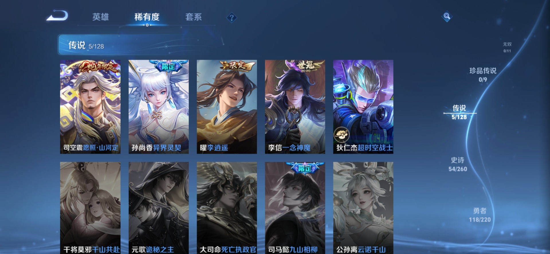 沈梦溪大漠名商,盾山御銮,曹操烛龙,苏烈千军破阵,典韦穷奇,达摩沙漠行僧,牛魔御旌,吕布猎兽之王,元歌云间偶戏,兰陵王金庭之子,裴擒虎擒涛扼浪,鲁班大师探海日志,明世隐疑决卦,白起狰,鬼谷子原初探秘者,张良古海寻踪,桑启海盐诗旅,狄仁杰万华元夜,芈月重明,程咬金演武夺筹,李元芳云中旅人,弈星混沌棋,米莱狄御霄,钟馗神迹守卫,钟馗驱傩正仪,狂铁御狮