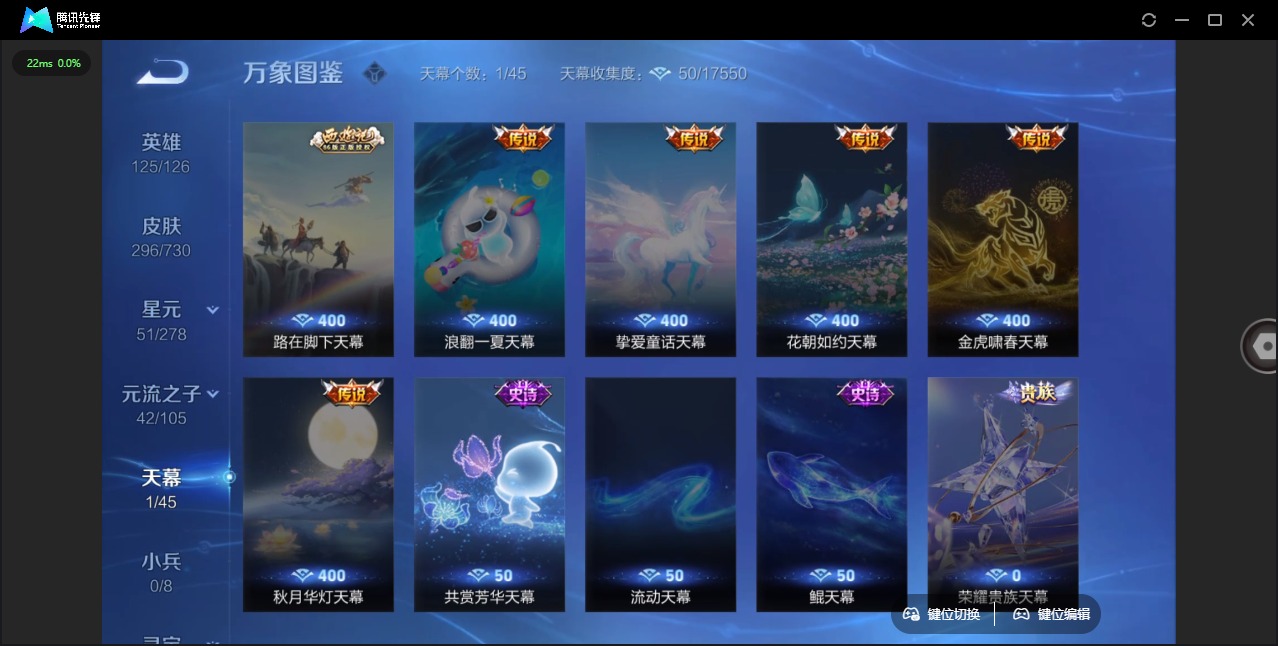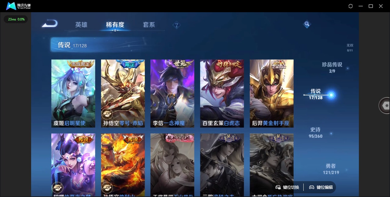 - [11522720]V8 2典藏 18传说 125英雄 294皮肤 可修改实名 优质装备:鸣剑·曳影,弑枪猎影(韩信典藏),黄金狮子座,绛天战甲(鸡嘴战神),炽阳神光,末日机甲-孙尚香(绿蚂蚱),地狱火,仲夏夜之梦(大飞蛾),胖达荣荣,时之恋人-刘备(电焊工),淬星耀世,超时空战士-狄仁杰,碎云 珍宝阁皮:妄想食味,女武神 限定皮:鸣野蒿,至尊宝,白虎志(电光耗子),凤求凰(白切鸡),神威(电光马子),飞衡(韩信年限),诗剑行,齐天大圣,怒海麟威,冰锋战神,梁祝,天狼绘梦者,李小龙,朱雀志(守约年限),山海·玄木吟(马可年限),冰霜神祇 史诗皮:鸭鸭历险记-刘禅,化蝶舞,龙之律动,百相守梦-周瑜,茶境仙,百相守梦-黄忠,紫霞仙子,电玩小子(小书包),白龙吟,黄金分割率,特工魅影,千年之狐,永昼,电玩·爆裂旋风,真我赫兹(百里守约),蒙恬荣光圣徽,偶像歌手,无限星赏官,晚萤,冰冠公主,末日机甲-吕布,猫狗日记-孙策,时之恋人-孙尚香,乱世虎臣,节奏热浪,修罗,女仆咖啡,摇滚巨星,水果甜心,绅士熊喵,星夜王子,心灵骇客,功夫厨神,德古拉伯爵,暗隐猎兽者,幽灵船长,鬼剑武藏,舞动绿茵,纤云弄巧,繁星吟游(呼啦呼啦),缤纷独角兽,逐浪之夏,水晶猎龙者,曙光守护者,热力回旋,箭羽风息,唤灵魅影,金属风暴,原初追逐者,圣诞恋歌,鹰眼统帅,暗夜贵公子,魅力维加斯,奇遇舞章,无心,未来纪元-赵云