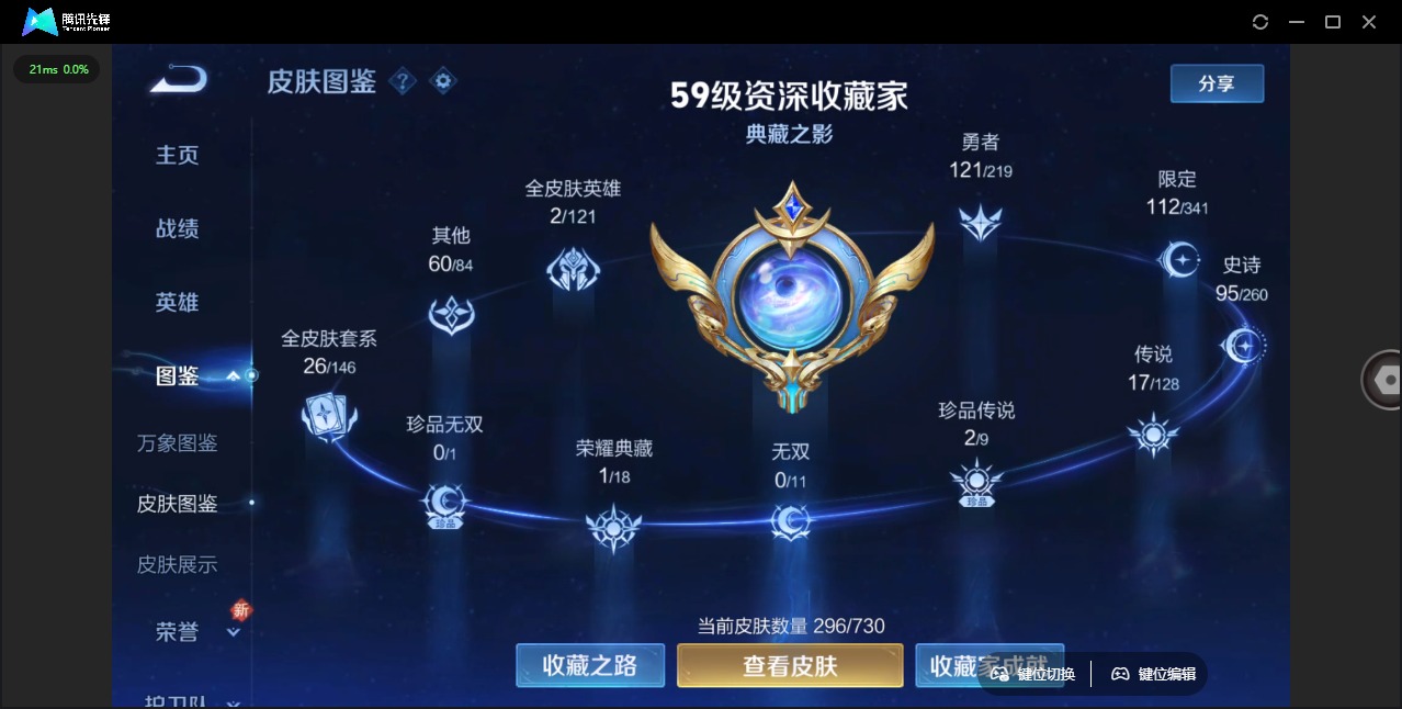 - PX_2077597-实名:,可修改,贵族等级:,V8,英雄数:,121,皮肤数:,278,荣耀水晶:,杀手不太冷,星传说:,幽冥火,金色仲夏夜,传说皮:,久胜战神,炽阳神光,一念神魔,地狱火,仲夏夜之梦,李逍遥,游龙清影,碎云,限定皮:,遇见飞天,李小龙,梁祝,引擎之心,天狼溯光者,神威,时之彼端,逐梦之音,青春决赛季,逐梦之星,凤求凰,美猴王,朱雀志,至尊宝,默契交锋-花木兰,高山流水,补天,