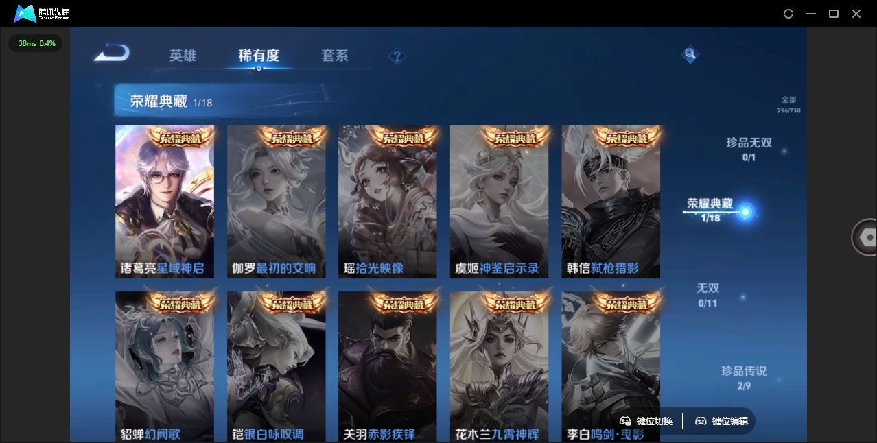 [12030786]V8 1典藏 2珍品传说 17传说 125英雄 296皮肤 可修改实名 优质装备:星域神启(倪克斯贼亮),江户川柯南,怪盗基德,黄金射手座,炽阳神光,一念神魔,地狱火,仲夏夜之梦(大飞蛾),零号·赤焰,游龙清影(小青龙),神器·狴犴令,燃星之曲,涂山容容 珍宝阁皮:妄想食味,女武神,玩趣恶龙 限定皮:陌上桑,鸣野蒿,白虎志(电光耗子),傲雪梅枪,寅虎·展翼(孙膑年限),白鹤梁神女,白晶晶,时雨天司(水龙头),神威(电光马子),遇见飞天,高山流水,诗剑行,五谷丰年,游园惊梦,梁祝,天狼溯光者,天狼绘梦者,李小龙,如梦令-嫦娥,如梦令-后羿,默契交锋-花木兰,真爱至上,孙行者,一生所爱,大圣娶亲,冰霜恋舞曲,云端筑梦师,寅虎·御盾(廉颇年限),寅虎·瑞焰(虎皮蛋子),寅虎·心曲(虎婆),寅虎·赤拳(老虎年限),无尽星芒 史诗皮:化蝶舞,龙之律动,石田雨龙,茶境仙,百相守梦-百里守约,遇见神鹿,紫霞仙子,苍穹之光,特工魅影,永昼,江河有灵,魅语,百解令(蒙犽),蒙恬荣光圣徽,无限星赏官,冰冠公主,偶像歌手,白蛇,晚萤,暗夜猫娘,猫狗日记-孙策,乱世虎臣,节奏热浪,修罗,女仆咖啡,摇滚巨星,水果甜心,星夜王子,心灵骇客,时之奇旅-安琪拉,功夫厨神,暗隐猎兽者,幽灵船长,鬼剑武藏,暗渊魔法,心灵战警,乐园奇幻夜,舞动绿茵,地狱岩魂,纤云弄巧,繁星吟游(呼啦呼啦),拒霜思,缤纷独角兽,乘风破浪,逐浪之夏,水晶猎龙者,金属风暴,原初追逐者,圣诞恋歌,鹰眼统帅,魅力维加斯,黎明之约,赏金猎手,寅虎·御盾,无心,未来纪元-赵云