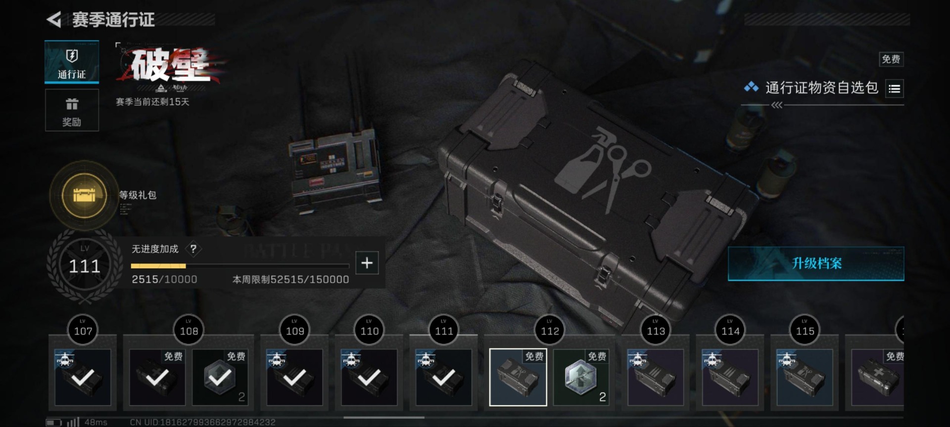 [12031194]总资产:210.3M 10传说枪械 哈夫币:89.353K 高级安全箱(9.17到期) 可二次 可修改实名 烽火地带段位:钻石 全面战场段位:无段位 传说武器皮肤:93R-捞点薯条,AWM狙击步枪-捞点薯条,腾龙突击步枪-捞点薯条,AK-12突击步枪-特斯拉线圈,CAR-15突击步枪-阿米娅,SR-3M紧凑突击步枪-特斯拉线圈,UZI冲锋枪-特斯拉线圈,勇士冲锋枪-能天使-午夜邮差,复合弓-黑-天际线,725双管霰弹枪-送葬人-无题密令 史诗武器皮肤:M16A4突击步枪-竞赛选手,SV-98狙击步枪-林中猎手,PKM通用机枪-荒野求生,SCAR-H战斗步枪-囚徒,腾龙突击步枪-无垢,MP7冲锋枪-无垢,PSG-1射手步枪-无垢,SVD狙击步枪-荒野求生,SR-3M紧凑突击步枪-荒野求生,Vector冲锋枪-阿萨拉文明,M700狙击步枪-竞技风