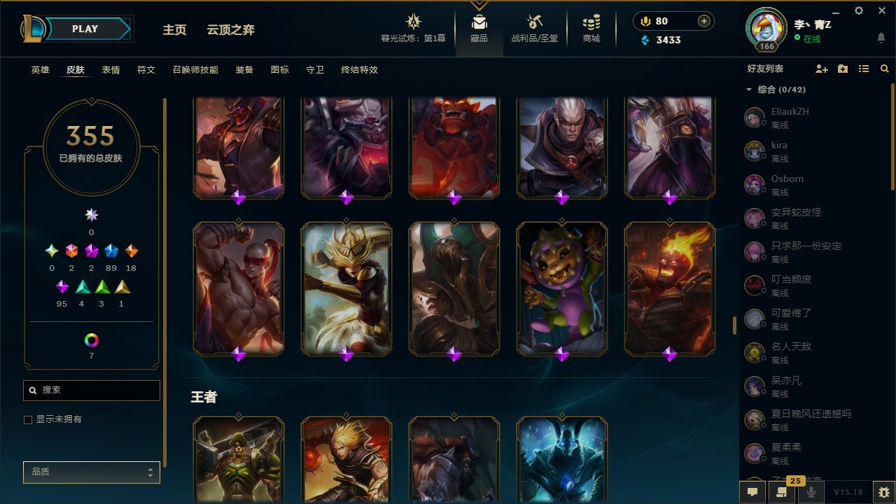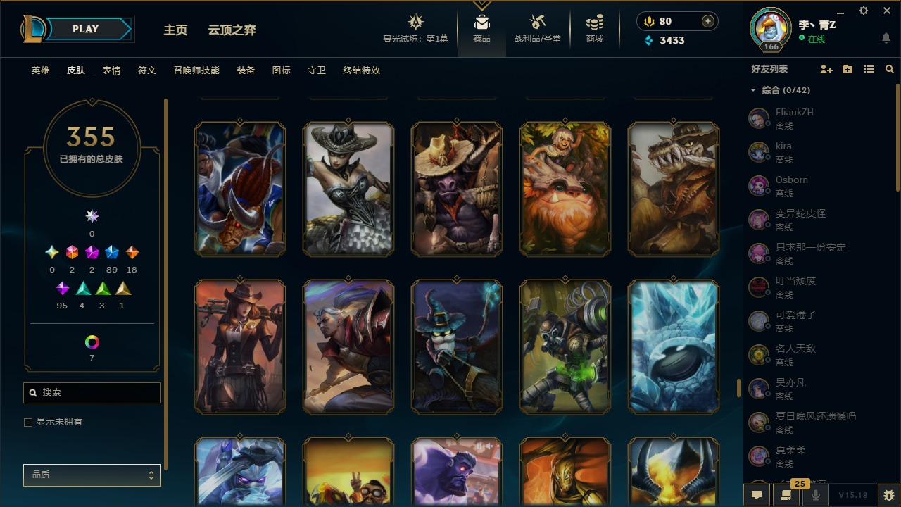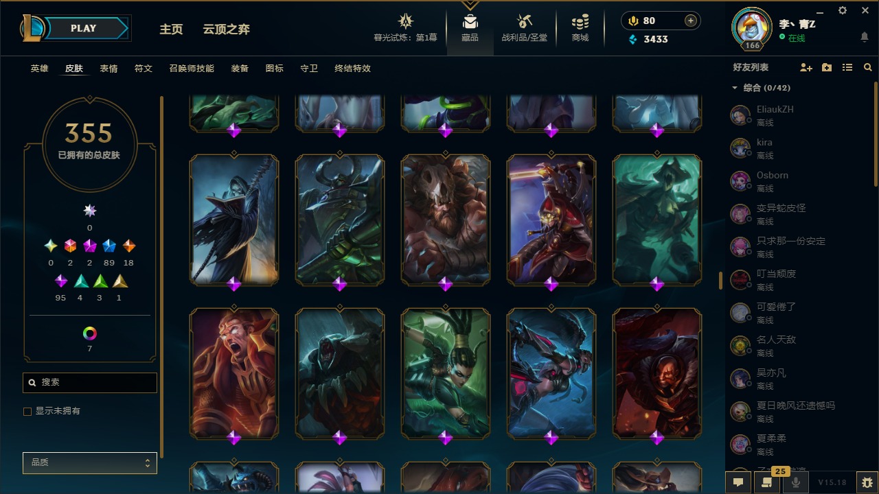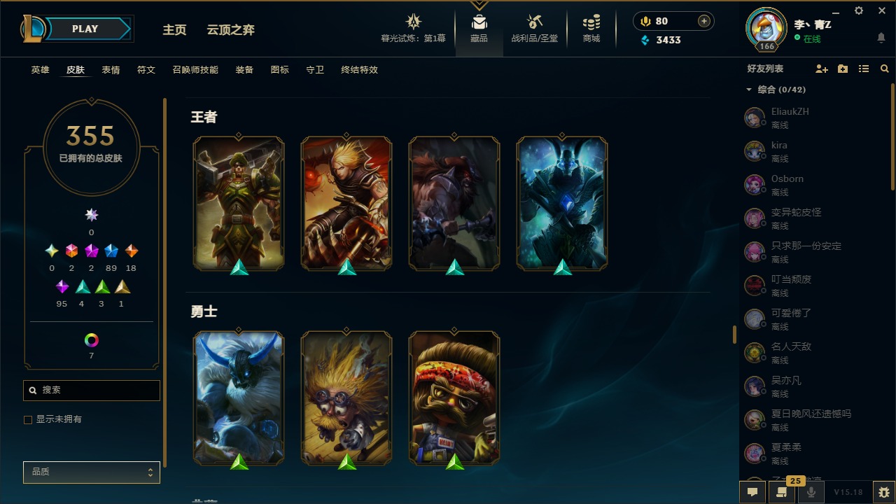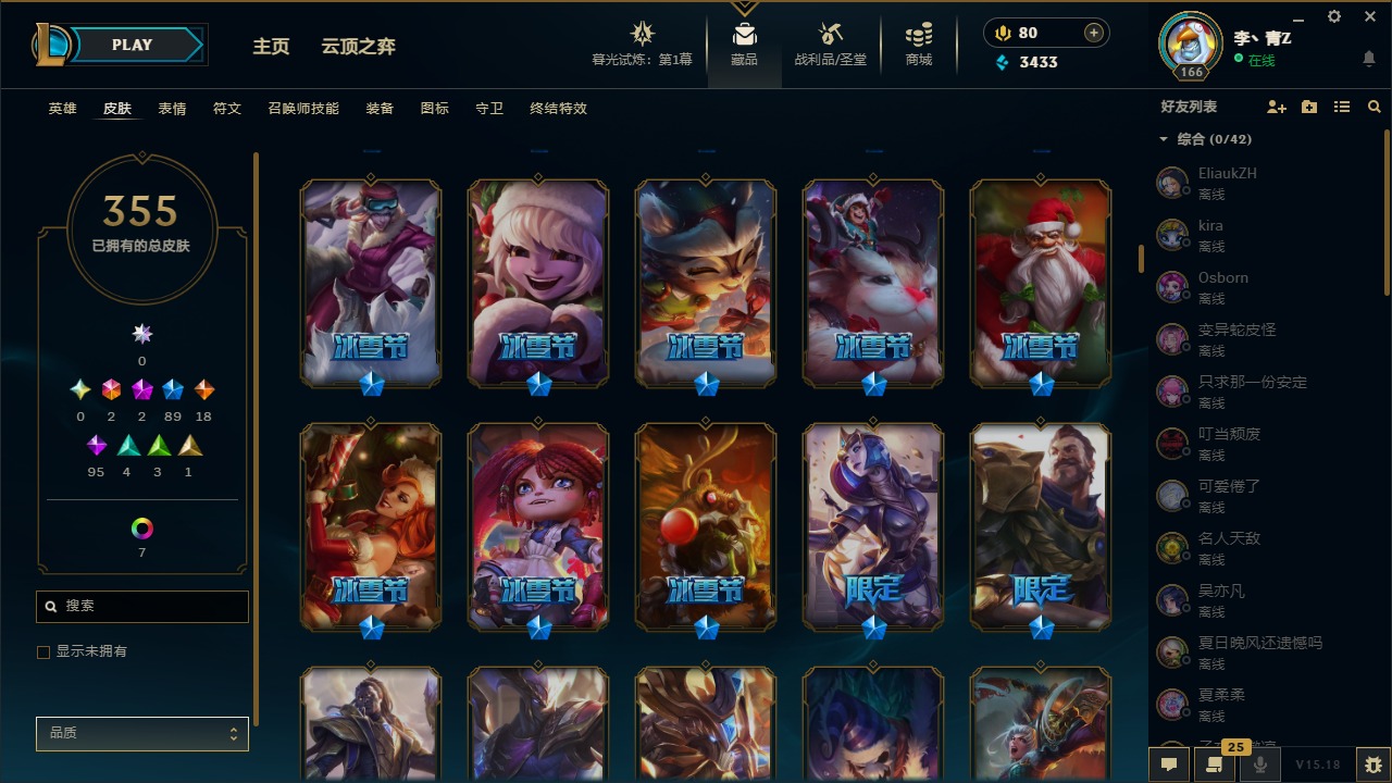 [12031440]2终极 2神话 89限定 18传说 95史诗 355皮肤 8炫彩 151英雄 可二次 可修改实名 优质装备:防爆天使 凯尔,暗影 沃里克,巧克力工坊 波比,创世纪 希维尔,都铎王朝 图奇,夺命美人 卡特,防爆机器人 布里茨,防爆士兵 炼金,防爆士兵 格雷福斯,钢铁之翼 凤凰,冠军之隐 劫,红桃杰克 崔斯特,机械迷城 加里奥,惊悚派对 费德提克,警用试作体K-9 内瑟斯,蓝色忧郁 崔斯特,蒙多蒙多,女猎手 希维尔,诺斯费拉图 弗拉基米尔,糖果使徒 费德提克,未来战士,DJ-娑娜,外星装甲 库奇,银龙裁夬 泰隆 潜龙在渊,暗裔英雄 盖伦 限定:钢铁军团 拉克丝,巨角幻兽 阿利斯塔,暗黑灵魂 阿利斯塔 情人节限定:觅心猎手 薇恩,觅心女王 寒冰,甜心宝贝 安妮 赛季限定皮:胜利之树 茂凯,胜利枪神 格雷福斯,胜利女神 奥利安娜,胜利之剑 剑魔,胜利枪神 卢锡安 冠军限定系列:S13 T1 李青,S1FNC 酒桶,S2 暗杀星 蒙多,S2 暗杀星 努努,S2 暗杀星 慎,S3 SKT T1 劫,S3 SKT T1 薇恩,S3 SKT T1 李青,S3 SKT T1 婕拉,S4 SSW 锤石,S4 SSW 雷恩加尔,S4 SSW 图奇,S4 SSW 炼金,S7 SSG 嘉文四世,S9 FPX 薇恩,S9 FPX 锤石,S9 FPX 李青,S9 FPX 墨菲特,S9 FPX 普朗克 冰雪节限定:“主人不要我了” 阿木木,冰雪节 格雷福斯,冰雪节 马尔扎哈,冬季仙境 发条,胡桃夹子 小丑,平安夜女神 娑娜,魄罗骑士 瑟庄妮,圣诞开心鬼 提莫,圣诞精灵 崔丝塔娜,圣诞狂欢 努努,圣诞老人 酒桶,圣诞糖果棒 厄运小姐,圣诞玩偶 波比,圣诞驯鹿 克格莫,冰雪节 茂凯,邪恶圣诞老人 维迦,幸福女神 乐芙兰,雪默丁格,雪装 奈德丽,英勇玩具兵船长 泳池派对:泳池派对 男枪,泳池派对 李青 万圣节限定:鬼影森森 茂凯,鬼影重重 魔腾,海贼 瑞兹,灵魂收割者 索拉卡,魅惑女巫 奈德丽,南瓜头 费德提克,无头骑士 人马 年限:龙年 克格莫,龙年 泰隆,龙年 李青,蛇年 卡西奥佩娅,马年 锐雯,猴年 孙悟空 周年:1周年 安妮,2周年 德莱厄斯,3周年 厄运小姐,10周年 安妮,10周年 凤凰