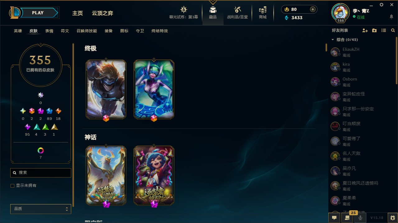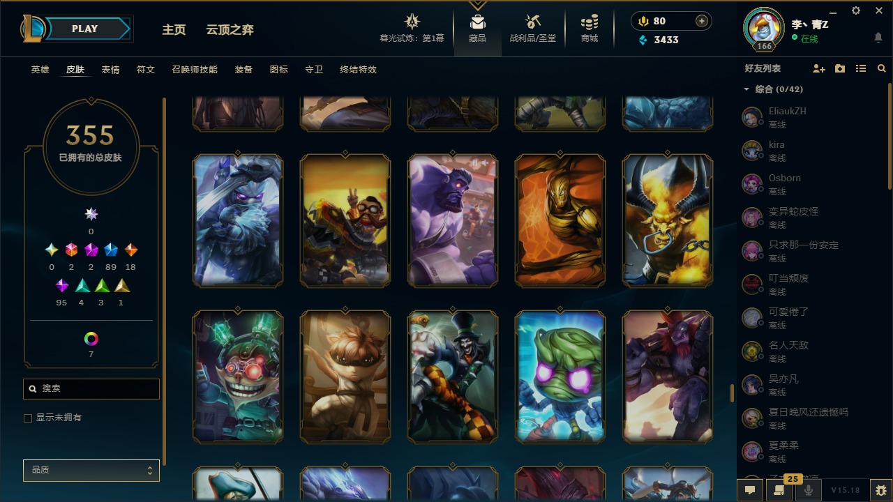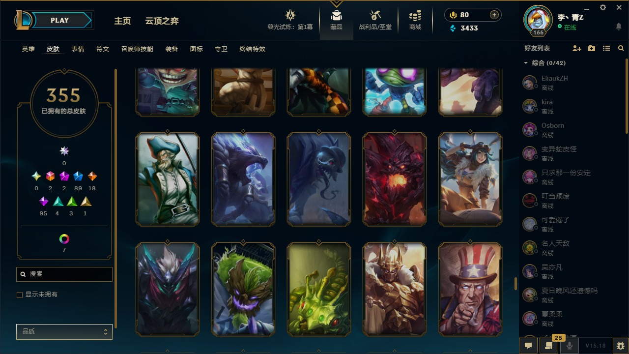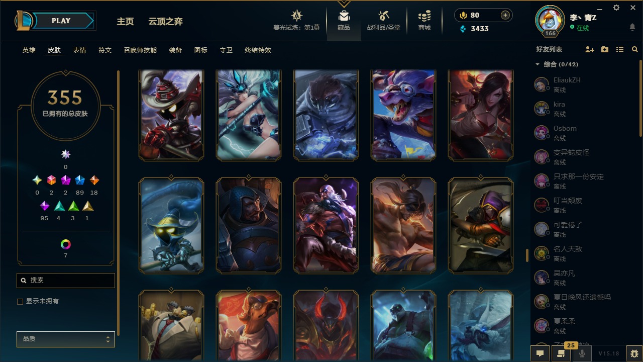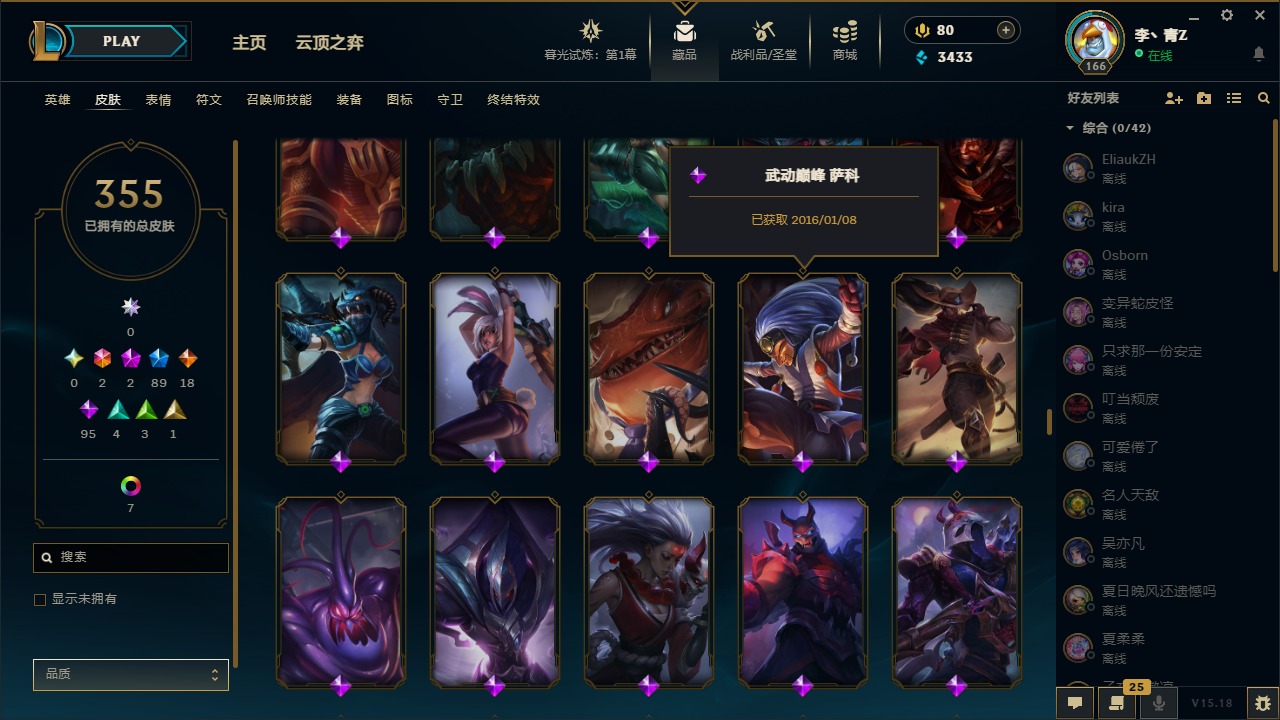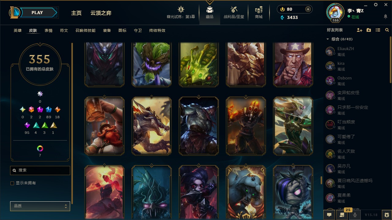 [12031440]2终极 2神话 89限定 18传说 95史诗 355皮肤 8炫彩 151英雄 可二次 可修改实名 优质装备:防爆天使 凯尔,暗影 沃里克,巧克力工坊 波比,创世纪 希维尔,都铎王朝 图奇,夺命美人 卡特,防爆机器人 布里茨,防爆士兵 炼金,防爆士兵 格雷福斯,钢铁之翼 凤凰,冠军之隐 劫,红桃杰克 崔斯特,机械迷城 加里奥,惊悚派对 费德提克,警用试作体K-9 内瑟斯,蓝色忧郁 崔斯特,蒙多蒙多,女猎手 希维尔,诺斯费拉图 弗拉基米尔,糖果使徒 费德提克,未来战士,DJ-娑娜,外星装甲 库奇,银龙裁夬 泰隆 潜龙在渊,暗裔英雄 盖伦 限定:钢铁军团 拉克丝,巨角幻兽 阿利斯塔,暗黑灵魂 阿利斯塔 情人节限定:觅心猎手 薇恩,觅心女王 寒冰,甜心宝贝 安妮 赛季限定皮:胜利之树 茂凯,胜利枪神 格雷福斯,胜利女神 奥利安娜,胜利之剑 剑魔,胜利枪神 卢锡安 冠军限定系列:S13 T1 李青,S1FNC 酒桶,S2 暗杀星 蒙多,S2 暗杀星 努努,S2 暗杀星 慎,S3 SKT T1 劫,S3 SKT T1 薇恩,S3 SKT T1 李青,S3 SKT T1 婕拉,S4 SSW 锤石,S4 SSW 雷恩加尔,S4 SSW 图奇,S4 SSW 炼金,S7 SSG 嘉文四世,S9 FPX 薇恩,S9 FPX 锤石,S9 FPX 李青,S9 FPX 墨菲特,S9 FPX 普朗克 冰雪节限定:“主人不要我了” 阿木木,冰雪节 格雷福斯,冰雪节 马尔扎哈,冬季仙境 发条,胡桃夹子 小丑,平安夜女神 娑娜,魄罗骑士 瑟庄妮,圣诞开心鬼 提莫,圣诞精灵 崔丝塔娜,圣诞狂欢 努努,圣诞老人 酒桶,圣诞糖果棒 厄运小姐,圣诞玩偶 波比,圣诞驯鹿 克格莫,冰雪节 茂凯,邪恶圣诞老人 维迦,幸福女神 乐芙兰,雪默丁格,雪装 奈德丽,英勇玩具兵船长 泳池派对:泳池派对 男枪,泳池派对 李青 万圣节限定:鬼影森森 茂凯,鬼影重重 魔腾,海贼 瑞兹,灵魂收割者 索拉卡,魅惑女巫 奈德丽,南瓜头 费德提克,无头骑士 人马 年限:龙年 克格莫,龙年 泰隆,龙年 李青,蛇年 卡西奥佩娅,马年 锐雯,猴年 孙悟空 周年:1周年 安妮,2周年 德莱厄斯,3周年 厄运小姐,10周年 安妮,10周年 凤凰