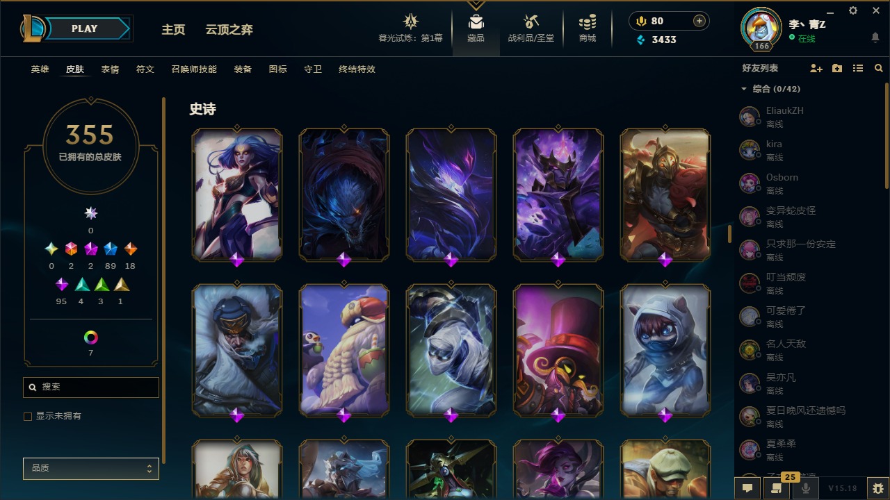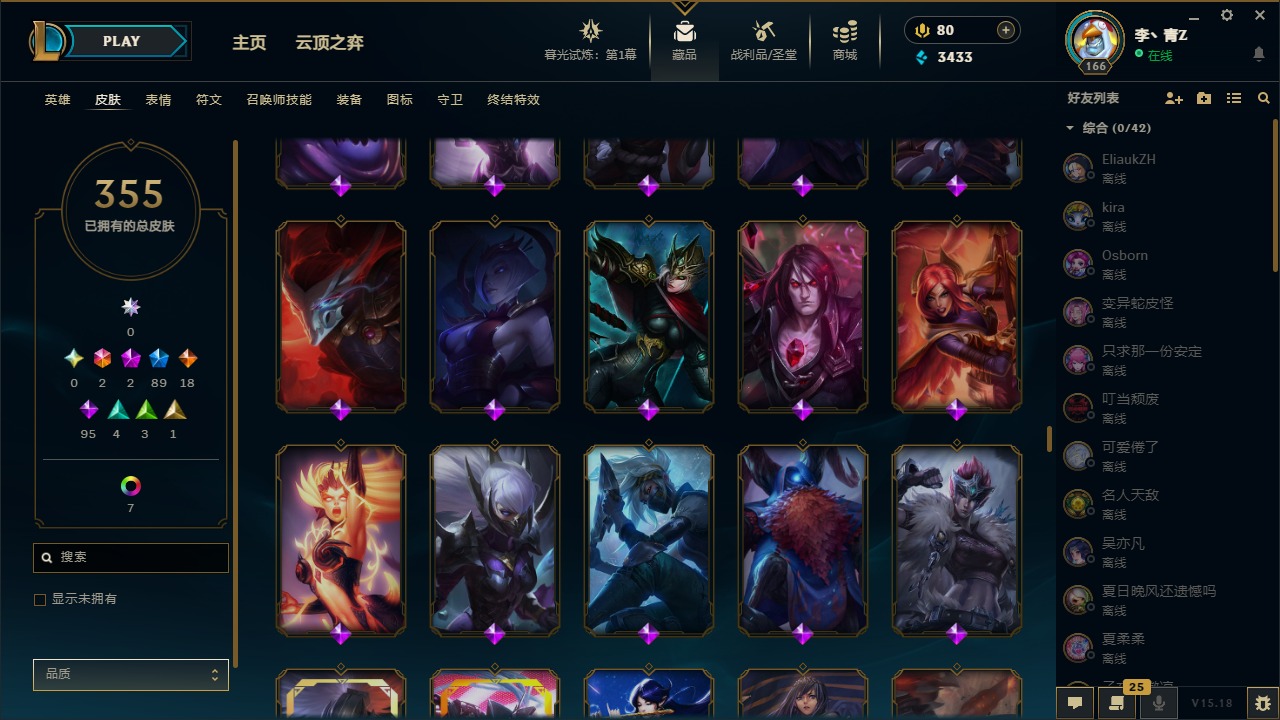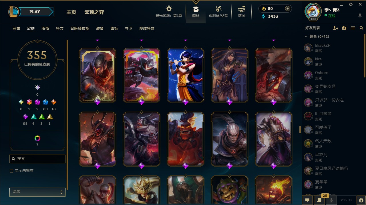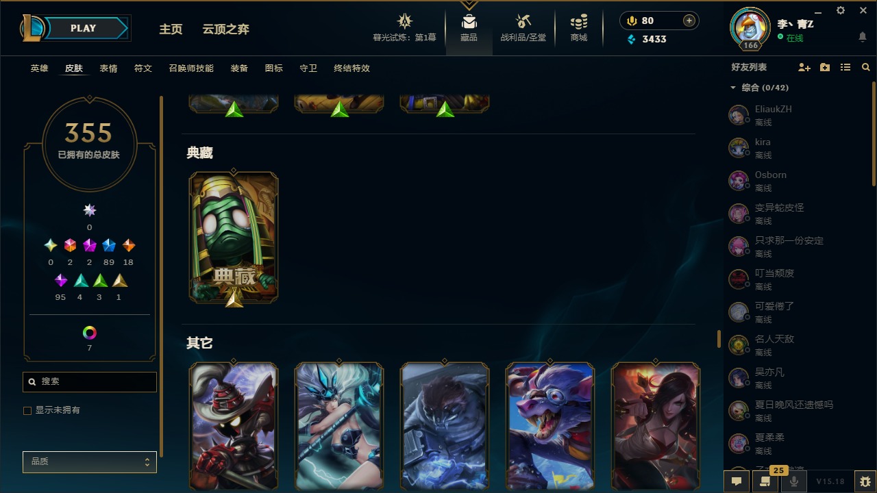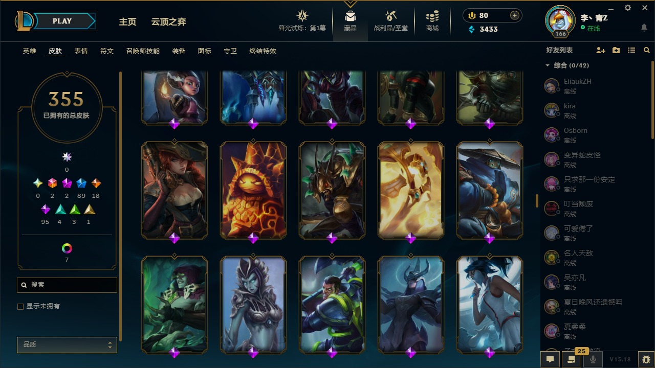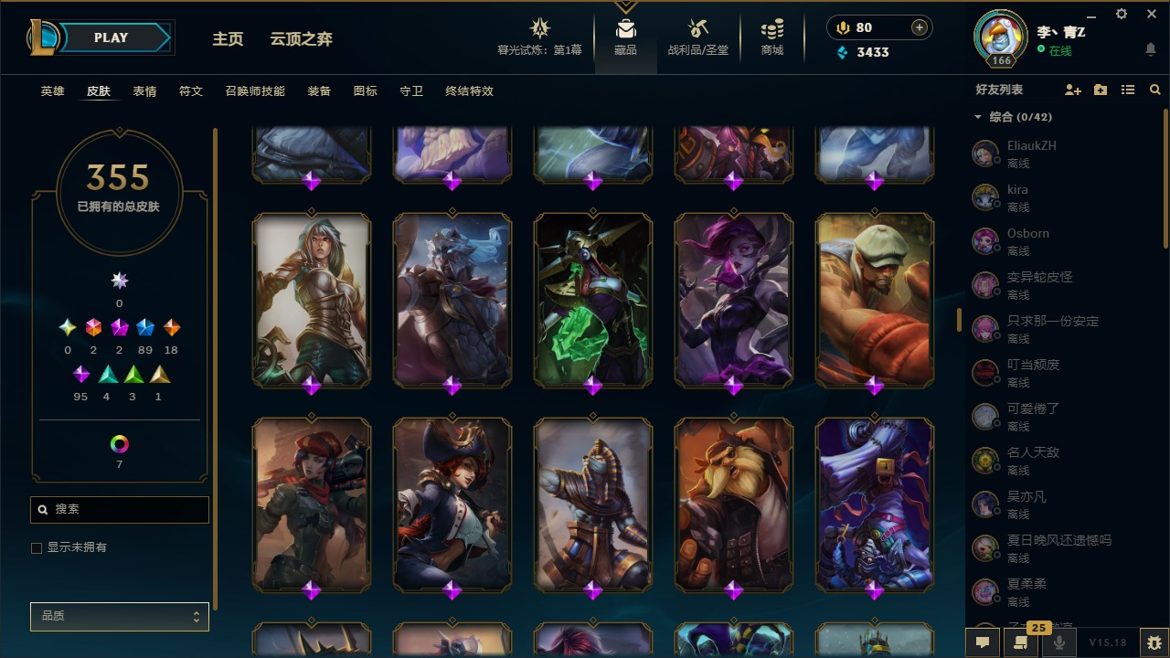 [12031440]2终极 2神话 89限定 18传说 95史诗 355皮肤 8炫彩 151英雄 可二次 可修改实名 优质装备:防爆天使 凯尔,暗影 沃里克,巧克力工坊 波比,创世纪 希维尔,都铎王朝 图奇,夺命美人 卡特,防爆机器人 布里茨,防爆士兵 炼金,防爆士兵 格雷福斯,钢铁之翼 凤凰,冠军之隐 劫,红桃杰克 崔斯特,机械迷城 加里奥,惊悚派对 费德提克,警用试作体K-9 内瑟斯,蓝色忧郁 崔斯特,蒙多蒙多,女猎手 希维尔,诺斯费拉图 弗拉基米尔,糖果使徒 费德提克,未来战士,DJ-娑娜,外星装甲 库奇,银龙裁夬 泰隆 潜龙在渊,暗裔英雄 盖伦 限定:钢铁军团 拉克丝,巨角幻兽 阿利斯塔,暗黑灵魂 阿利斯塔 情人节限定:觅心猎手 薇恩,觅心女王 寒冰,甜心宝贝 安妮 赛季限定皮:胜利之树 茂凯,胜利枪神 格雷福斯,胜利女神 奥利安娜,胜利之剑 剑魔,胜利枪神 卢锡安 冠军限定系列:S13 T1 李青,S1FNC 酒桶,S2 暗杀星 蒙多,S2 暗杀星 努努,S2 暗杀星 慎,S3 SKT T1 劫,S3 SKT T1 薇恩,S3 SKT T1 李青,S3 SKT T1 婕拉,S4 SSW 锤石,S4 SSW 雷恩加尔,S4 SSW 图奇,S4 SSW 炼金,S7 SSG 嘉文四世,S9 FPX 薇恩,S9 FPX 锤石,S9 FPX 李青,S9 FPX 墨菲特,S9 FPX 普朗克 冰雪节限定:“主人不要我了” 阿木木,冰雪节 格雷福斯,冰雪节 马尔扎哈,冬季仙境 发条,胡桃夹子 小丑,平安夜女神 娑娜,魄罗骑士 瑟庄妮,圣诞开心鬼 提莫,圣诞精灵 崔丝塔娜,圣诞狂欢 努努,圣诞老人 酒桶,圣诞糖果棒 厄运小姐,圣诞玩偶 波比,圣诞驯鹿 克格莫,冰雪节 茂凯,邪恶圣诞老人 维迦,幸福女神 乐芙兰,雪默丁格,雪装 奈德丽,英勇玩具兵船长 泳池派对:泳池派对 男枪,泳池派对 李青 万圣节限定:鬼影森森 茂凯,鬼影重重 魔腾,海贼 瑞兹,灵魂收割者 索拉卡,魅惑女巫 奈德丽,南瓜头 费德提克,无头骑士 人马 年限:龙年 克格莫,龙年 泰隆,龙年 李青,蛇年 卡西奥佩娅,马年 锐雯,猴年 孙悟空 周年:1周年 安妮,2周年 德莱厄斯,3周年 厄运小姐,10周年 安妮,10周年 凤凰