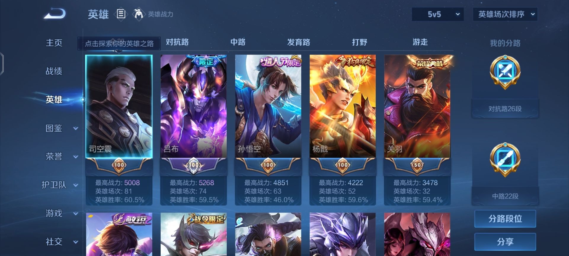 - PX_2106502-贵族等级: V5 英雄数: 121 皮肤数: 92 传说皮: 地狱之眼,无双飞将 限定皮: 李小龙,白虎志,高山流水,猪悟能,傲雪梅枪,五谷丰年