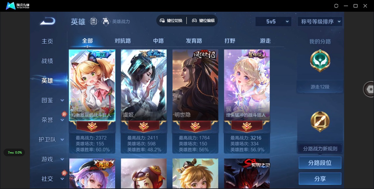 - [11688303]V2 3传说 123英雄 106皮肤 可修改实名 优质装备:久胜战神 传说皮:幻光神枪 珍宝阁皮:玩趣恶龙 限定皮:鸣野蒿,五谷丰年,李小龙 史诗皮:灵蛊蚀心,百相守梦-黄忠,特工魅影,江河有灵,偶像歌手,乱世虎臣,女仆咖啡,摇滚巨星,水果甜心,绅士熊喵,暗隐猎兽者,幽灵船长,鬼剑武藏,心灵战警,地狱岩魂,缤纷独角兽,乘风破浪,金属风暴,鹰眼统帅,魅力维加斯
