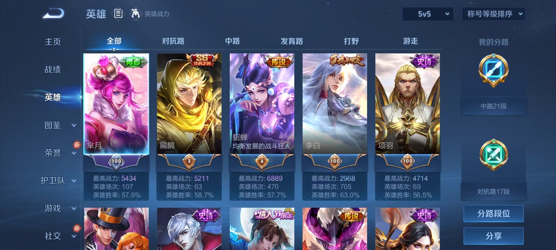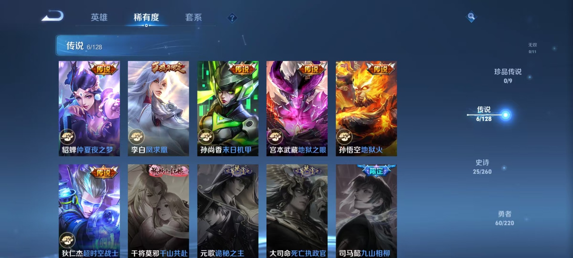 - PX_2044806-苹果Q 【可二次】 英雄数量:119 皮肤数量:250 贵族等级:贵族V8 【小国标甄姬 芈月 李元芳 夏侯惇 盘古 后羿】【打野74段 发育路51段】传说品质20 史诗品质68记忆之芯 深海之息 寅虎赤拳 山海苍雷引 幻光神枪 愿照·九州拓 齐天大圣 炽阳神光 神器狴犴令 怒海麟威 前尘镜 启明星使 地狱火 地狱之眼 时之恋人男 胖达荣荣 超时空战士男 鸣野蒿 夜礼服假面