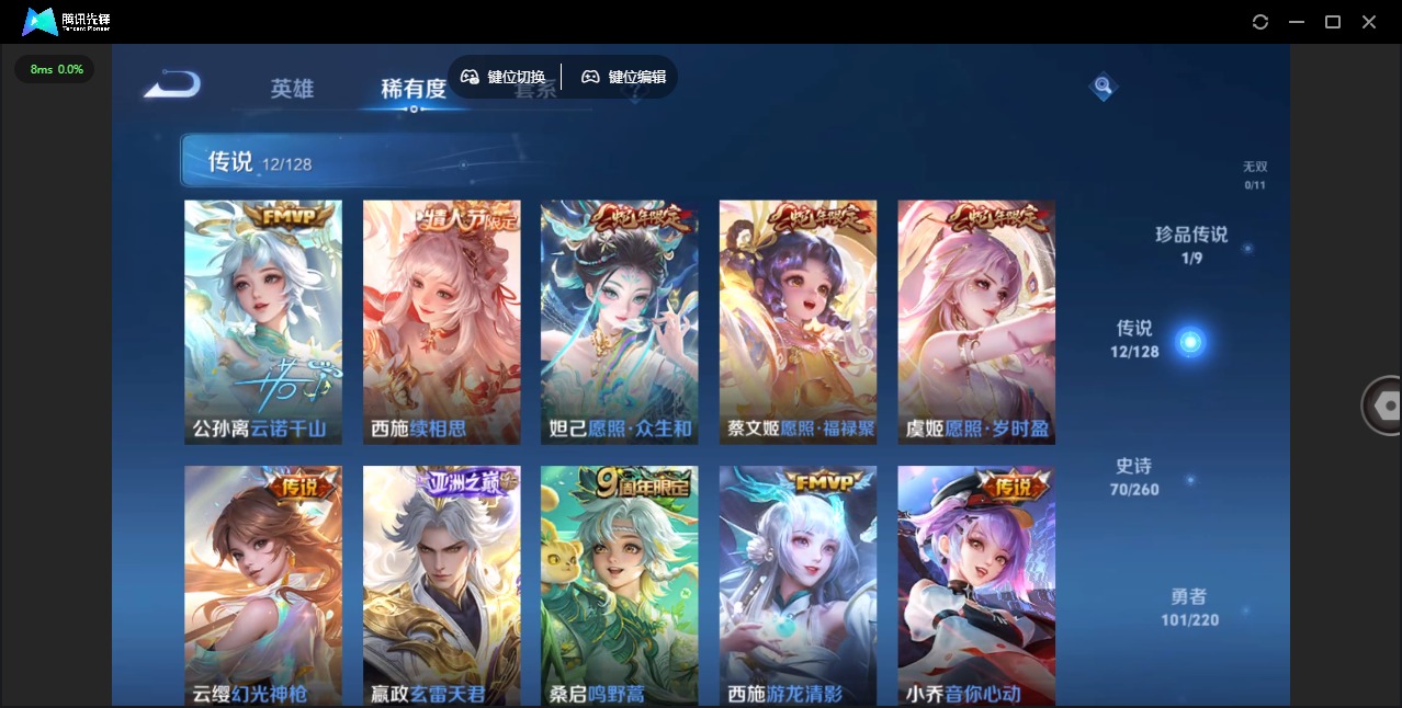 - [11525660]V8 3珍品传说 23传说 122英雄 219皮肤 可修改实名 优质装备:江户川柯南,怪盗基德,黄金狮子座,久胜战神,云霓雀翎,末日机甲-孙尚香(绿蚂蚱),仲夏夜之梦(大飞蛾),李逍遥,游龙清影(小青龙),挚爱之约,挚爱花嫁,音你闪耀(rap皮),山海·琳琅生(小乔年限),山海·苍雷引(电光曜子),燃星之曲,浮生妄,鹤归松栖(云缨),琥珀纪元马超 珍品传说:时之奇旅-孙策 传说皮:幻光神枪 珍宝阁皮:女武神 限定皮:愿照·山河定(司空震年限),鸣野蒿,凤凰于飞,前尘镜,白鹤梁神女,山海·碧波行(瑶年限),影龙天霄,遇见飞天,高山流水,诗剑行,五谷丰年,幽恒(沐浴露),天狼绘梦者,李小龙,朱雀志(守约年限),纯白花嫁,热情桑巴,山海·玄木吟(马可年限) 史诗皮:器灵·浮梦炉,糖绘人间,化蝶舞,星界战将,龙之律动,东方月初,谪仙醉月,遇见神鹿,紫霞仙子,永昼,电玩·爆裂旋风,鹤归松栖(赵怀真),江河有灵,银翎春语,蒙恬荣光圣徽,偶像歌手,龙骑士(小龙虾),白蛇,魅语,无限星赏官,晚萤,青蛇,末日机甲-吕布,猫狗日记-大乔,节奏热浪,女仆咖啡,水果甜心,绅士熊喵,星夜王子,心灵骇客,德古拉伯爵,幽灵船长,鬼剑武藏,舞动绿茵,地狱岩魂,繁星吟游(呼啦呼啦),拒霜思,缤纷独角兽,乘风破浪,逐浪之夏,水晶猎龙者,曙光守护者,唤灵魅影,金属风暴,圣诞狂欢,圣诞恋歌,鹰眼统帅,魅力维加斯,赏金猎手,无心,未来纪元-赵云