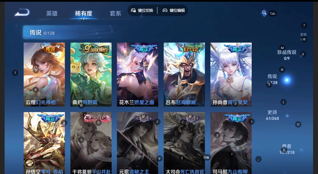 - [12106435]V8 1典藏 14传说 124英雄 186皮肤 可修改实名 优质装备:全息碎影(猴子典藏),黄金狮子座,黄金射手座,冠军飞将,久胜战神,云霓雀翎,末日机甲-孙尚香(绿蚂蚱),地狱火,仲夏夜之梦(大飞蛾),涂山容容 限定皮:鸣野蒿,至尊宝,白虎志(电光耗子),凤求凰(白切鸡),武陵仙君(小桃花),飞衡(韩信年限),瑞麟志(木兰年限),青龙志(铠年限),梁祝,天狼狩猎者,逐梦之星,天狼征服者,李小龙,逐梦之影,永曜之星,引擎之心,冰霜恋舞曲,热情桑巴,神奇女侠 史诗皮:龙之律动,东方月初,织梦人,紫霞仙子,电玩小子(小书包),白龙吟,黄金分割率,特工魅影,千年之狐,冰冠公主,偶像歌手,猫狗日记-孙策,乱世虎臣,节奏热浪,水果甜心,天才门将,德古拉伯爵,暗隐猎兽者,幽灵船长,鬼剑武藏,暗渊魔法,地狱岩魂,乘风破浪,逐浪之夏,水晶猎龙者,曙光守护者,金属风暴,圣诞恋歌,鹰眼统帅,王者之锤,魅力维加斯