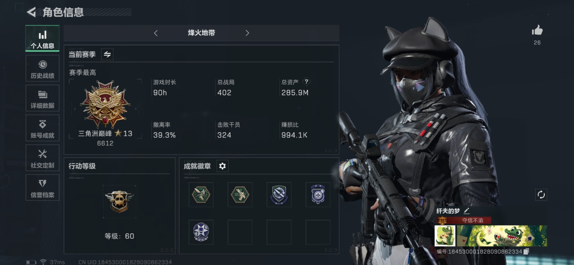 [12032238]总资产:258.9M 1近战传说 13传说枪械 哈夫币:201K 高级安全箱(2×3)9.15号到期 可二次 可修改实名 优质装备:近战-北极星 烽火地带段位:三角洲巅峰 全面战场段位:无段位 传说武器皮肤:M4A1突击步枪-阿米娅,CAR-15突击步枪-阿米娅,AWM狙击步枪-捞点薯条,QCQ171冲锋枪-北极星,腾龙突击步枪-捞点薯条,93R-捞点薯条,AK-12突击步枪-特斯拉线圈,SR-3M紧凑突击步枪-特斯拉线圈,UZI冲锋枪-特斯拉线圈,勇士冲锋枪-能天使-午夜邮差,725双管霰弹枪-送葬人-无题密令,K437突击步枪-北极星