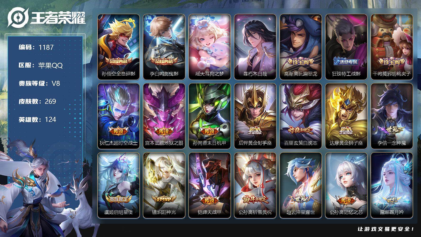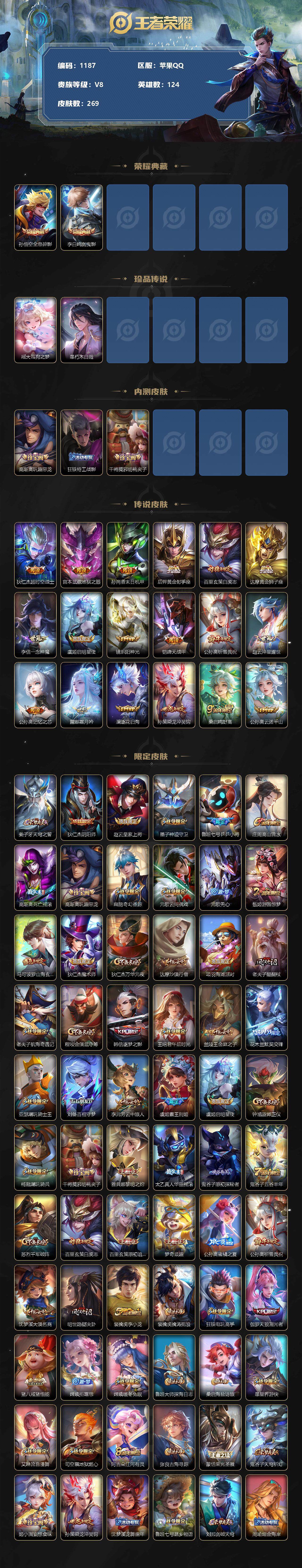 [12032286]【商品标题】:苹果Q-V8-永恒钻石III段位-124英雄-269皮肤-2典藏-0珍品无双-0无双-2珍品传说-18传说-84史诗