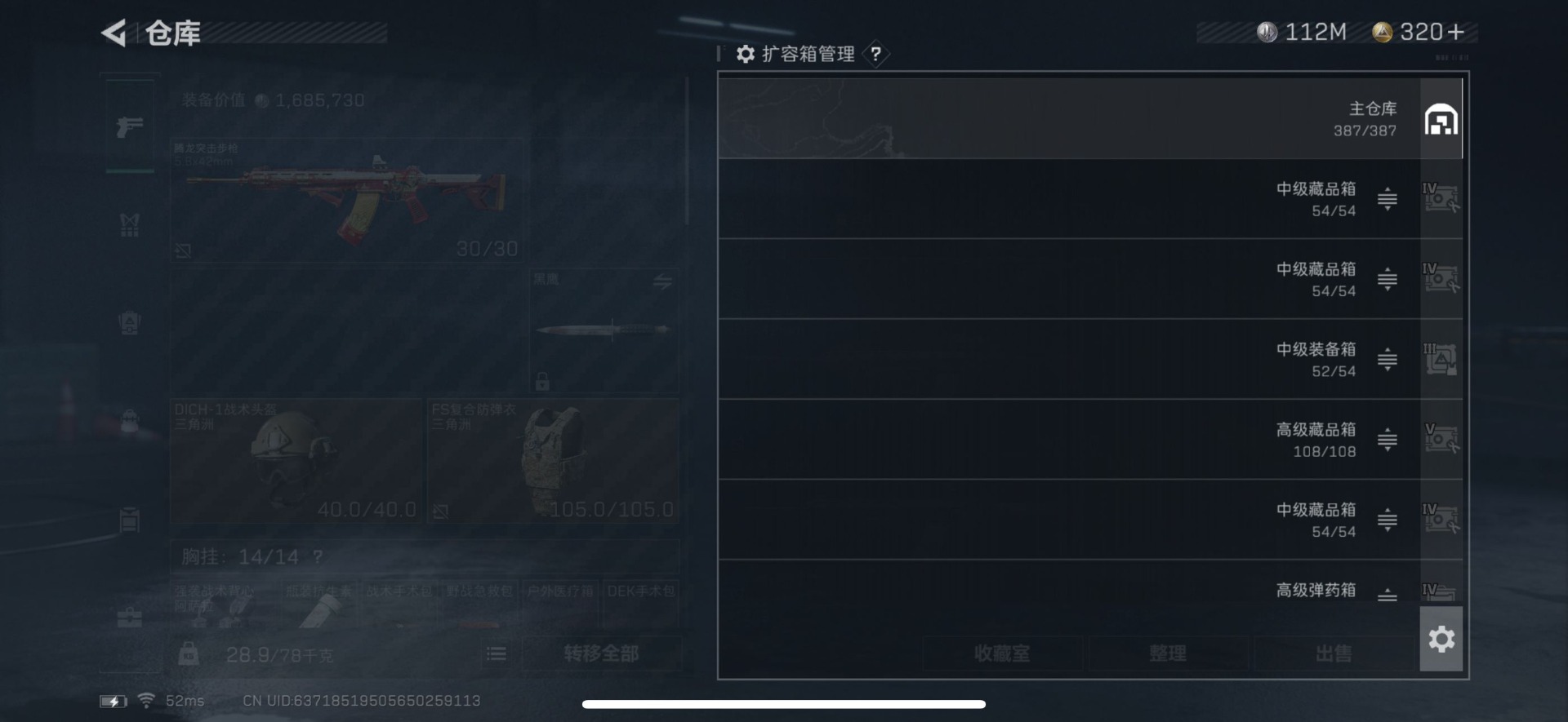 [12032287]总资产:261.2M 9传说枪械 哈夫币:112K 进阶安全箱(9.17到期) 可二次 可修改实名 烽火地带段位:铂金 全面战场段位:无段位 传说武器皮肤:93R-捞点薯条,AWM狙击步枪-捞点薯条,腾龙突击步枪-捞点薯条,AK-12突击步枪-特斯拉线圈,SR-3M紧凑突击步枪-特斯拉线圈,UZI冲锋枪-特斯拉线圈,勇士冲锋枪-能天使-午夜邮差,Vector冲锋枪-能天使-午夜邮差,M4A1突击步枪-阿米娅 史诗武器皮肤:M16A4突击步枪-竞赛选手,M1014霰弹枪-林中猎手,SG552突击步枪-深海恐惧,AKM突击步枪-林中猎手,SV-98狙击步枪-林中猎手,PTR-32突击步枪-英雄