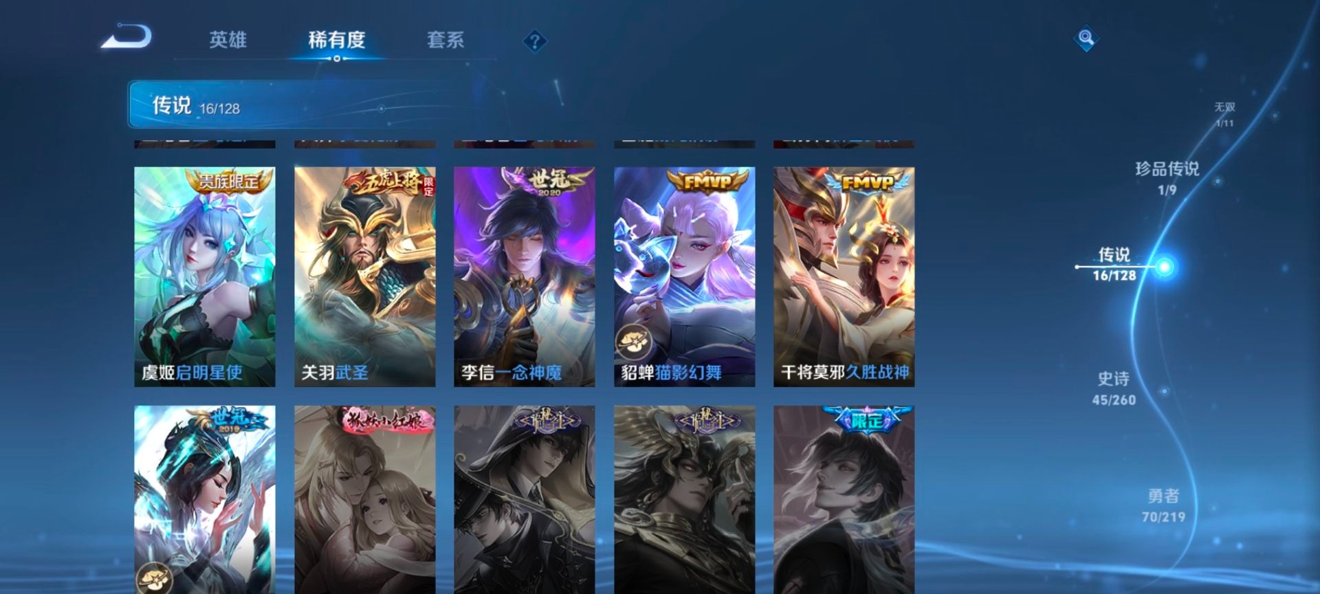- PX_2098335-??碎影·白虎志·瑶时之祈愿·续相思·云诺千山】【可二次】ASYw13293-安卓Q-125英雄-314皮肤-190铭文-贵族积分11w【贵族9】【1典藏·2星传说·21传说·7按键】【因赛季更新游戏段付以上号为准!】 【荣耀典藏】:孙悟空全息碎影 【星元皮肤】:孙尚香未来机甲,貂蝉金色仲夏夜 【内测皮肤】:孙尚香蔷薇恋人,狂铁特工战影 【传说皮肤】:狄仁杰超时空战士,孙悟空