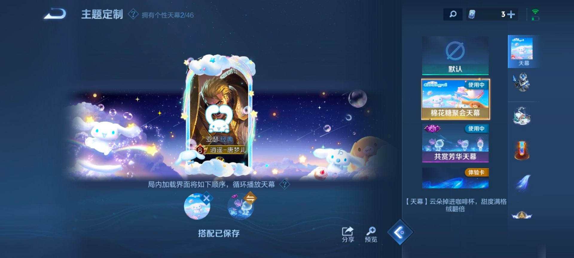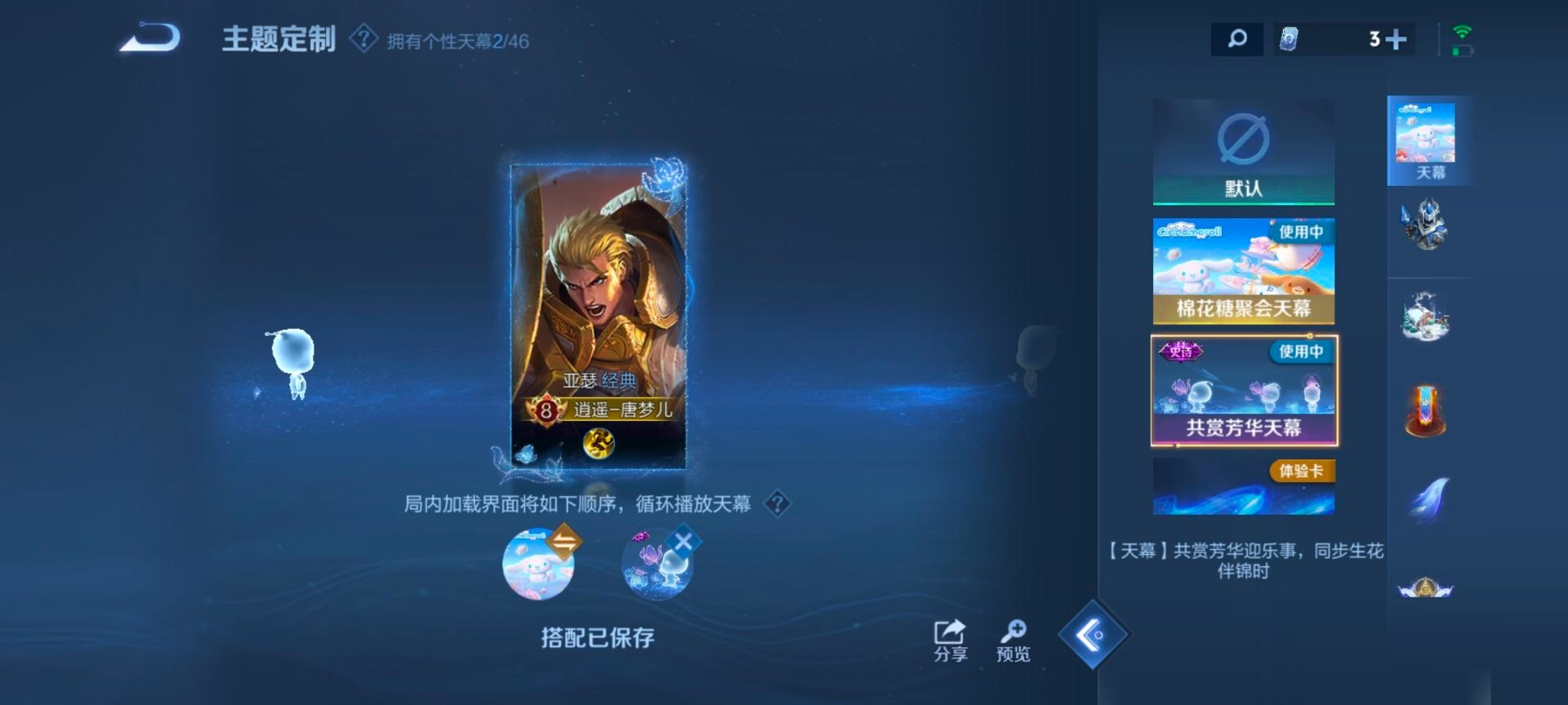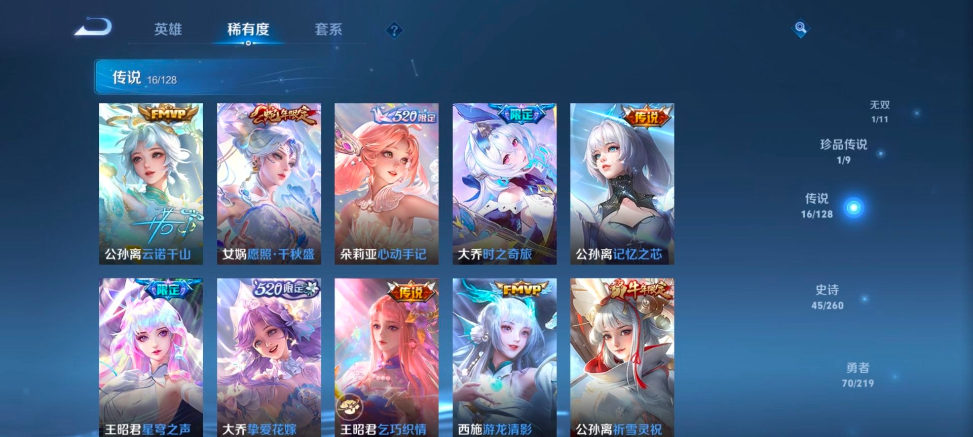 大乔挚爱花嫁,大乔时之奇旅,干将莫邪久胜战神,李信一念神魔,王昭君乞巧织情,朵莉亚心动手记,公孙离记忆之芯,貂蝉猫影幻舞,西施游龙清影,虞姬云霓雀翎