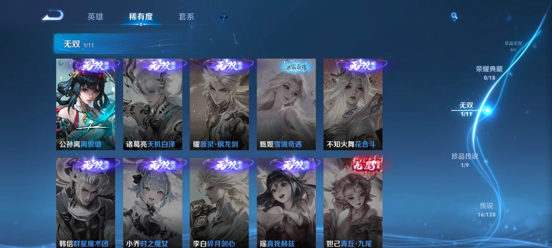 [12032415]V8 1无双 1珍品传说 16传说 124英雄 174皮肤 可修改实名 优质装备:离恨烟(公孙离无双),酷洛米之心,猫影幻舞,久胜战神,一念神魔,云霓雀翎,乞巧织情,游龙清影(小青龙),挚爱花嫁,记忆之芯(机甲兔),大乔-时之奇旅,朵莉亚心动手记,涂山容容 传说皮:云诺千山 珍宝阁皮:玩趣恶龙 限定皮:愿照·千秋盛(女娲年限),逐霄战戟,至尊宝,星穹之声,高山流水,五谷丰年,武圣,祈雪灵祝(雪兔子),玄武志(苏烈年限),如梦令-嫦娥,猪悟能,蜜橘之夏,匿光追影者,女儿国国王,寅虎·心曲(虎婆),百木心枪,玉兔公主 史诗皮:化蝶舞,白龙吟,黄金分割率,永昼,无限星赏官,青蛇,白蛇,猫狗日记-孙策,猫狗日记-大乔,乱世虎臣,节奏热浪,水果甜心,星夜王子,心灵骇客,时之奇旅-安琪拉,德古拉伯爵,暗隐猎兽者,鬼剑武藏,拒霜思,缤纷独角兽,逐浪之夏,曙光守护者,金属风暴,圣诞恋歌,鹰眼统帅,魅力维加斯,无心