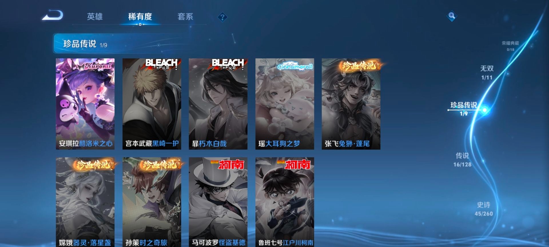 - [11527162]V8 2典藏 15传说 122英雄 338皮肤 可修改实名 优质装备:全息碎影(猴子典藏),九霄神辉(木兰典藏),黄金射手座,猫影幻舞,久胜战神,一念神魔,仲夏夜之梦(大飞蛾),李逍遥,淬星耀世,超时空战士-狄仁杰,山海·炽霜斩(李信年限),鹤羽星尊 珍宝阁皮:蔷薇恋人,女武神 限定皮:至尊宝,太华(伽罗年限),异界灵契(白毛香),傲雪梅枪,神威(电光马子),瑞麟志(木兰年限),遇见飞天,高山流水,匿光决锋者,五谷丰年,冰锋战神,武圣,游园惊梦,梁祝,御风骁将(吕布年限),天狼溯光者,李小龙,逐梦之影,孙行者,猪悟能,大圣娶亲,青春决赛季,匿光追影者,寅虎·赤拳(老虎年限),时之祈愿-云中君,玉兔公主,山海·玄木吟(马可年限) 史诗皮:紫霞仙子,苍穹之光,白龙吟,黄金分割率,特工魅影,千年之狐,永昼,浮梦罗烟,魅语,冰冠公主,偶像歌手,晚萤,电玩·爆裂旋风,暗夜猫娘,百相守梦(关羽),末日机甲-吕布,乱世虎臣,节奏热浪,修罗,女仆咖啡,摇滚巨星,水果甜心,绅士熊喵,星夜王子,心灵骇客,功夫厨神,德古拉伯爵,暗隐猎兽者,幽灵船长,鬼剑武藏,暗渊魔法,心灵战警,天秀·启明,舞动绿茵,地狱岩魂,纤云弄巧,繁星吟游(呼啦呼啦),拒霜思,缤纷独角兽,乘风破浪,逐浪之夏,水晶猎龙者,曙光守护者,箭羽风息,金属风暴,原初追逐者,圣诞狂欢,圣诞恋歌,鹰眼统帅,魅力维加斯,黎明之约,无心,未来纪元-赵云