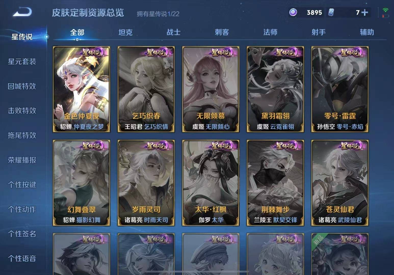 - [11294838]V7 9传说 124英雄 175皮肤 可修改实名 优质装备:冠军飞将,猫影幻舞,久胜战神,炽阳神光,末日机甲-孙尚香(绿蚂蚱),仲夏夜之梦(大飞蛾) 珍宝阁皮:优雅恋人 限定皮:至尊宝,白虎志(电光耗子),凤求凰(白切鸡),武陵仙君(小桃花),魔法小厨娘,神威(电光马子),飞衡(韩信年限),遇见飞天,五谷丰年,梁祝,天狼狩猎者,天狼征服者,天狼绘梦者,李小龙,朱雀志(守约年限),大圣娶亲,蜜橘之夏 史诗皮:紫霞仙子,黄金分割率,特工魅影,千年之狐,无限星赏官,末日机甲-吕布,节奏热浪,摇滚巨星,水果甜心,天才门将,星夜王子,心灵骇客,德古拉伯爵,幽灵船长,鬼剑武藏,地狱岩魂,繁星吟游(呼啦呼啦),缤纷独角兽,乘风破浪,曙光守护者,箭羽风息,金属风暴,原初追逐者,圣诞狂欢,圣诞恋歌,鹰眼统帅,魅力维加斯,未来纪元-赵云