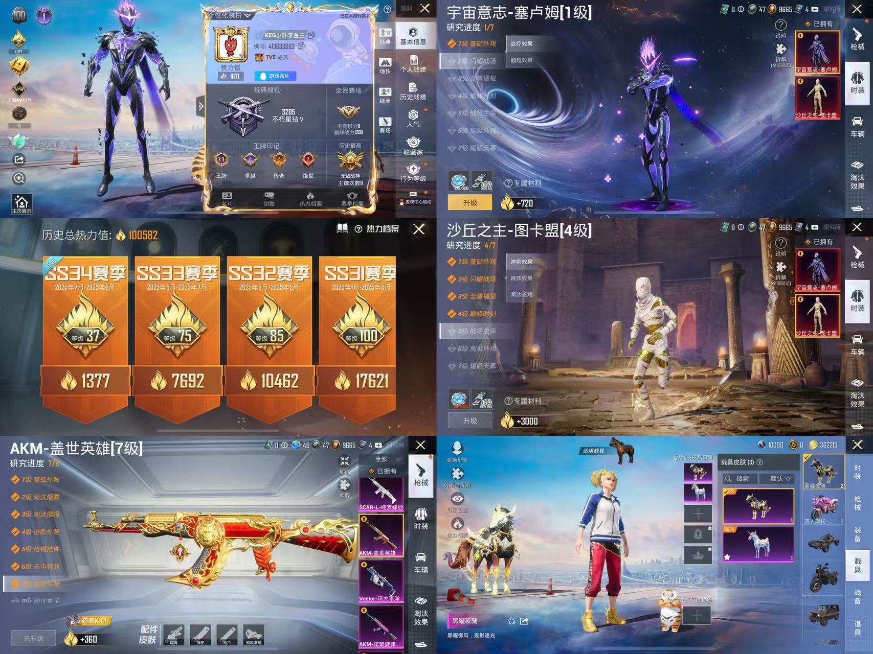 M249-金丰海韵,M762-奇异狩猎者,AKM-百万伏特,M416-星际漫游