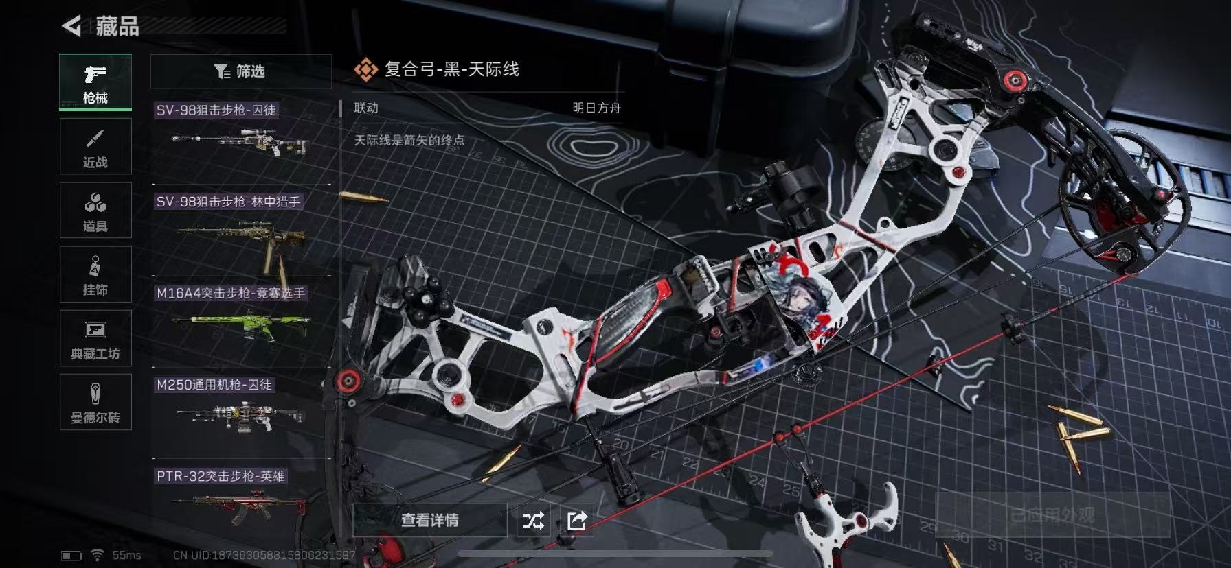 [12046160]总资产:108.8M 1传说枪械 哈夫币:54.857K 可二次 可修改实名 烽火地带段位:铂金 全面战场段位:无段位 传说武器皮肤:复合弓-黑-天际线 史诗武器皮肤:M1014霰弹枪-林中猎手,SV-98狙击步枪-林中猎手,PTR-32突击步枪-英雄,M250通用机枪-囚徒,M16A4突击步枪-竞赛选手,SVD狙击步枪-暗夜猎手,SG552突击步枪-深海恐惧,AKM突击步枪-林中猎手