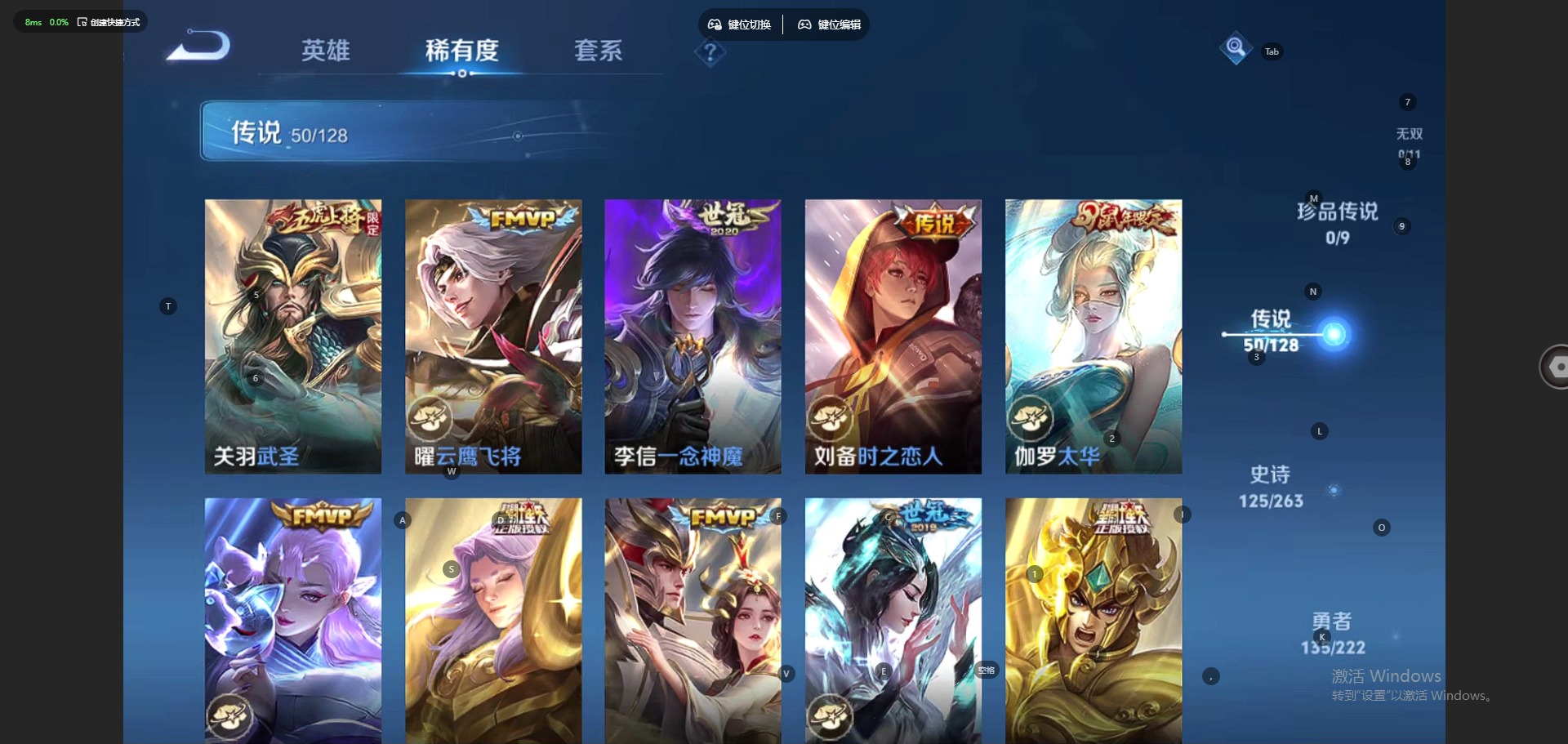 - [12149190]V7 4传说 115英雄 152皮肤 可修改实名 优质装备:地狱火 珍宝阁皮:蔷薇恋人 限定皮:鸣野蒿,至尊宝,凤求凰(白切鸡),凤凰于飞,时之彼端,梁祝,龙胆,烈魂,天狼绘梦者,李小龙,朱雀志(守约年限),如梦令-后羿,天魔缭乱 史诗皮:化蝶舞,石田雨龙,黄金分割率,特工魅影,魅语,冰冠公主,晚萤,暗夜猫娘,修罗,摇滚巨星,水果甜心,心灵骇客,功夫厨神,鬼剑武藏,纤云弄巧,缤纷独角兽,乘风破浪,曙光守护者,金属风暴,圣诞狂欢,圣诞恋歌,鹰眼统帅,魅力维加斯