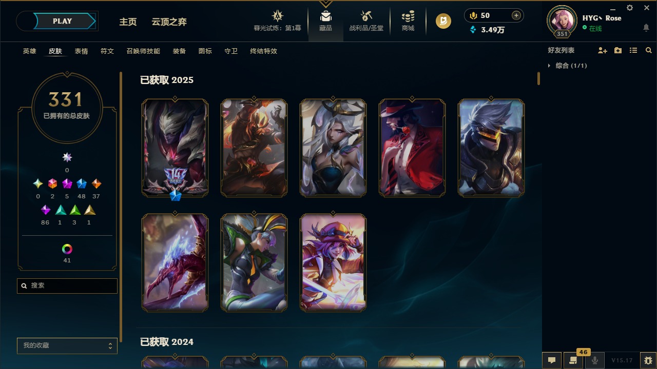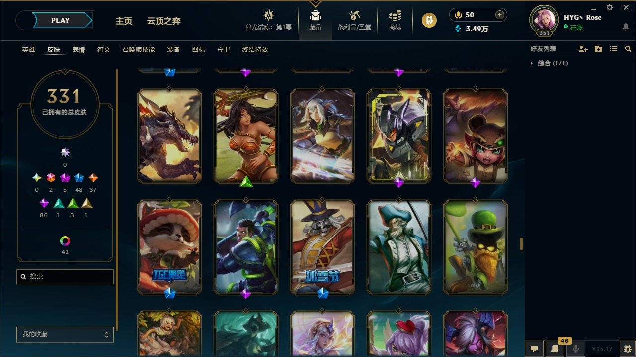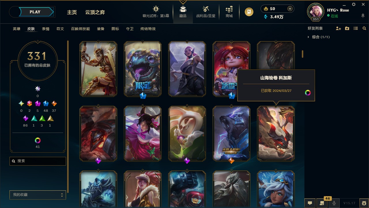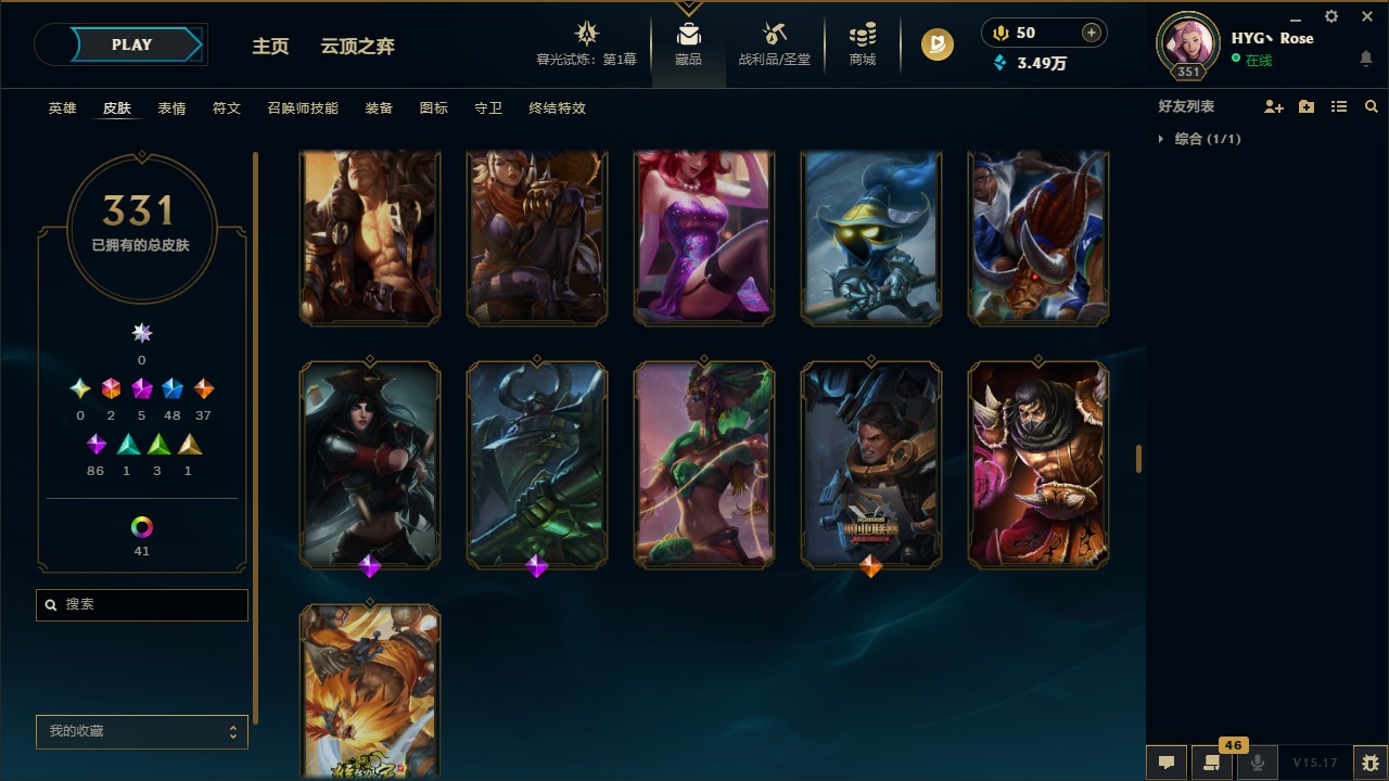 [12050218]2终极 5神话 48限定 37传说 86史诗 331皮肤 56炫彩 171英雄 可二次 可修改实名 优质装备:至臻 K/DA 阿卡丽,至臻 K/DA ALL OUT卡莎,黎明使者 卡尔玛,源代码 乐芙兰,防爆天使 凯尔,巧克力工坊 波比,都铎王朝 图奇,防爆机器人 布里茨,惊悚派对 阿木木,克格汪 克格莫,蒙多蒙多,密林猎手 提莫,送披萨的小姐姐 希维尔,永恒之森 乐芙兰,大元素使,DJ-娑娜,霸天巨兽·雪崩 墨菲特,天煞 劫 恒星游历者,无畏骑士 瑟庄妮 赤子初心,外星装甲 库奇,可爱可爱粉红红 布里茨,净雪之月 莫甘娜 冬虹,魔女 阿卡丽 虚荣,红莲之刃 锐雯,暗裔英雄 盖伦 情人节限定:觅心之翼 奎因,碎心之拳 蔚,甜心宝贝 安妮,甜心之翎 洛 赛季限定皮:胜利女神 娑娜,胜利巨口 克格莫,胜利枪神 格雷福斯,胜利女神 奥利安娜 冠军限定系列:S1FNC 酒桶,S2 暗杀星 发条,S3 SKT T1 贾克斯,S3 SKT T1 婕拉,S4 SSW 雷恩加尔,S4 SSW 泰隆,S4 SSW 炼金 冰雪节限定:冰雪节 炼金,胡桃夹子 小丑,魄罗骑士 瑟庄妮,圣诞狂欢 努努,圣诞老人 酒桶,圣诞糖果棒 厄运小姐,圣诞玩偶 波比,圣诞驯鹿 克格莫,邪恶圣诞老人 维迦,雪球也能爆炸 吉格斯,雪装 奈德丽,北极星猎人 斯维因 泳池派对:泳池派对 男枪,泳池派对 雷克顿,泳池派对 李青 万圣节限定:无头骑士 人马 年限:天龙之子 斯莫德,龙年 孙悟空,羊年 金克丝,猴年 孙悟空 周年:4周年 锐雯,10周年 安妮