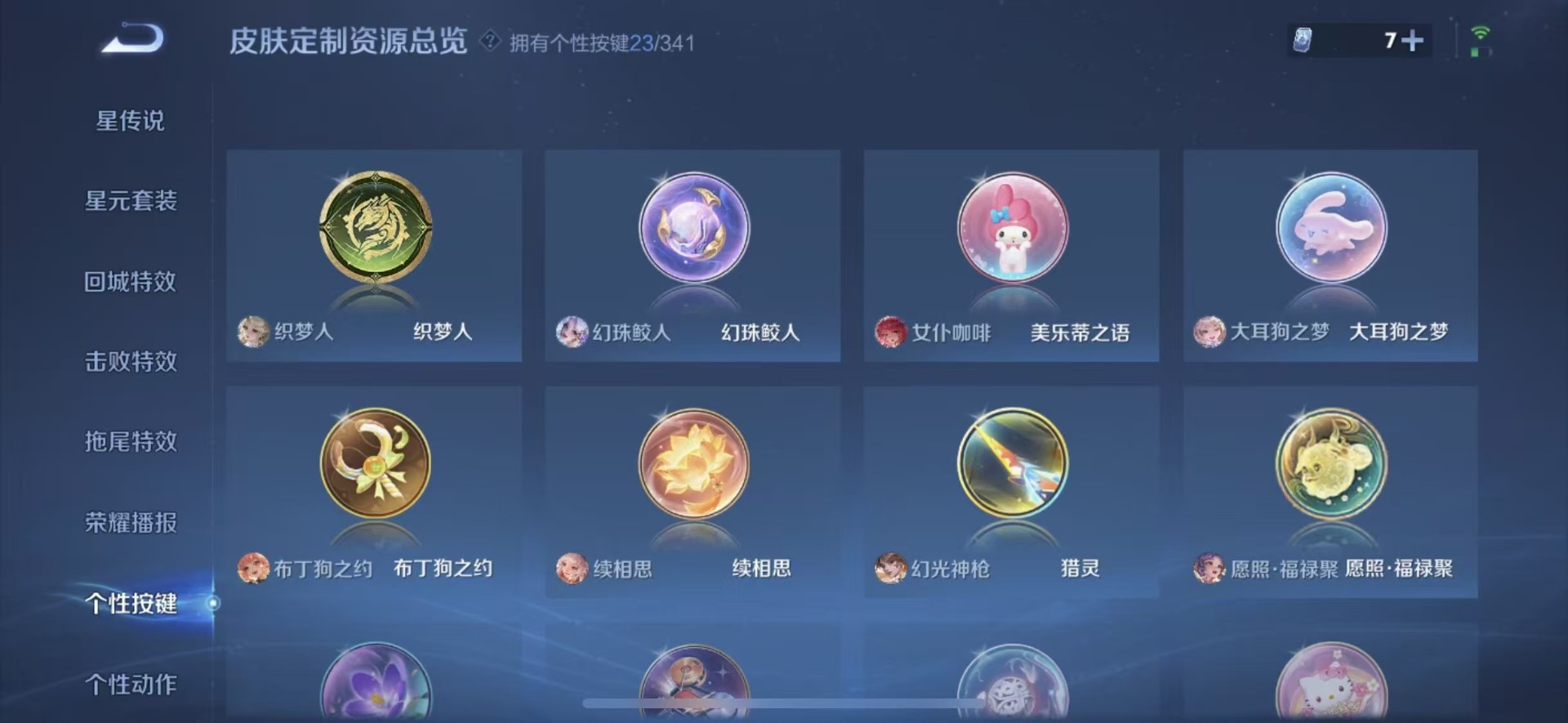 大乔挚爱花嫁,小乔音你心动,李信一念神魔,王昭君乞巧织情,镜炽阳神光,西施游龙清影,西施续相思,曜云鹰飞将,曜李逍遥,王昭君永恒水手月亮,云缨幻光神枪
