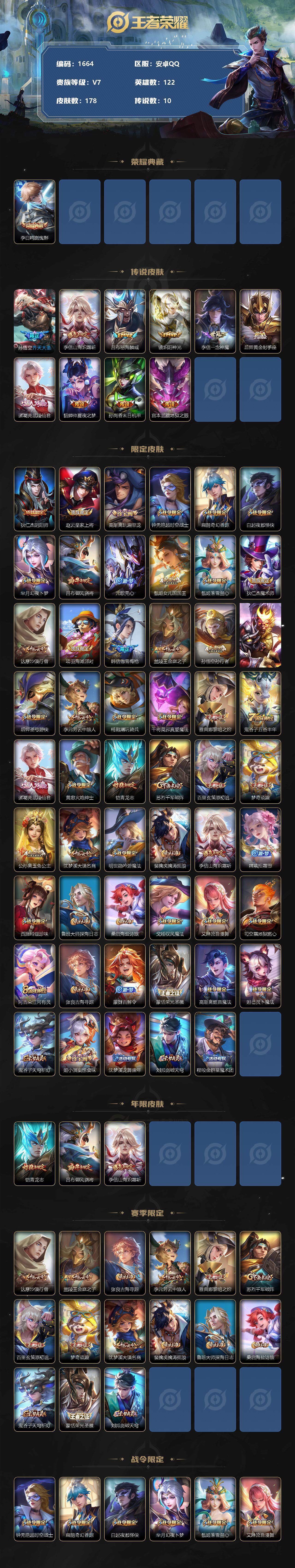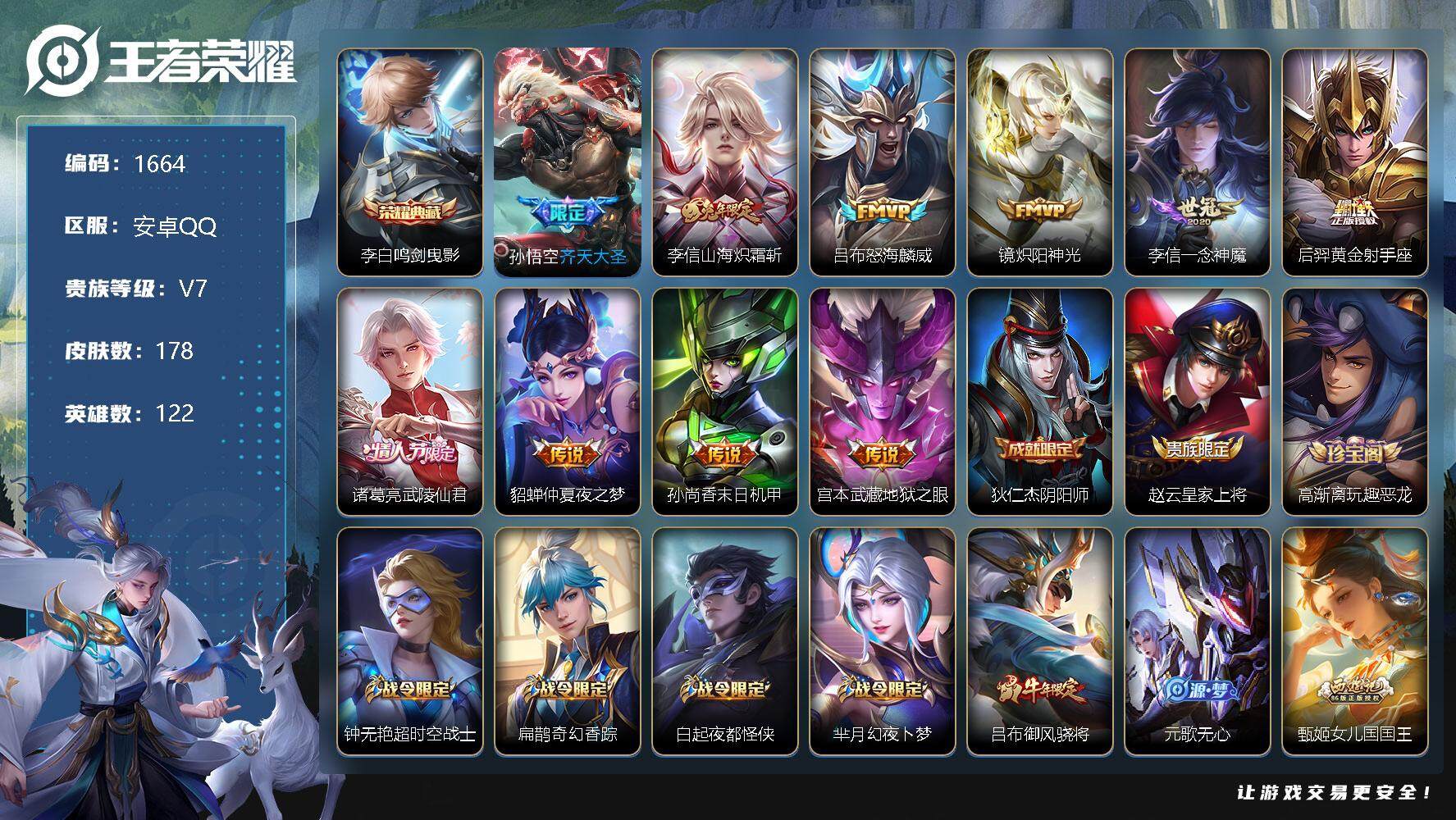 [12051773]【商品标题】:安卓Q-V0-永恒钻石IV段位-122英雄-178皮肤-1典藏-0珍品无双-0无双-0珍品传说-10传说-57史诗
