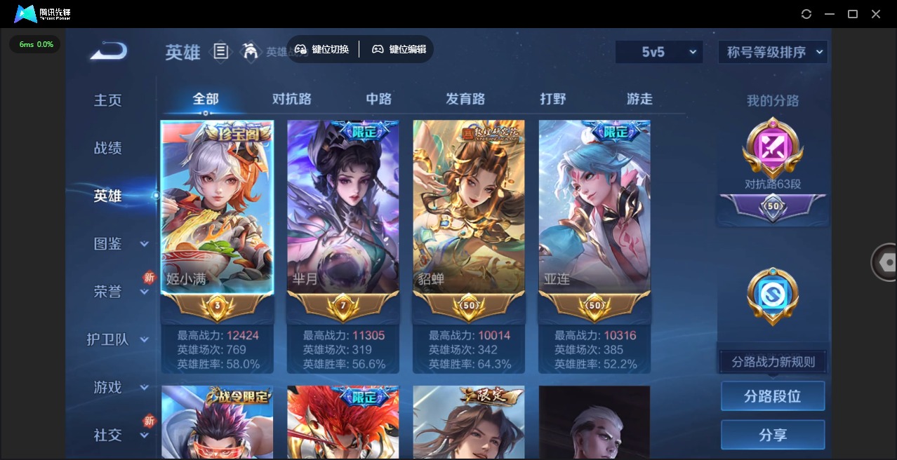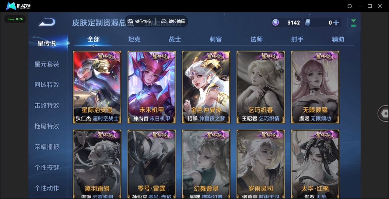 - [11931523]V6 4传说 97英雄 82皮肤 可修改实名 优质装备:黄金狮子座,云鹰飞将(小将军),零号·赤焰 珍宝阁皮:万物之道 限定皮:时雨天司(水龙头),梁祝,李小龙,朱雀志(守约年限),大圣娶亲,冰霜恋舞曲 史诗皮:苍穹之光,白龙吟,黄金分割率,千年之狐,修罗,水果甜心,心灵骇客,功夫厨神,幽灵船长,纤云弄巧,鹰眼统帅,魅力维加斯