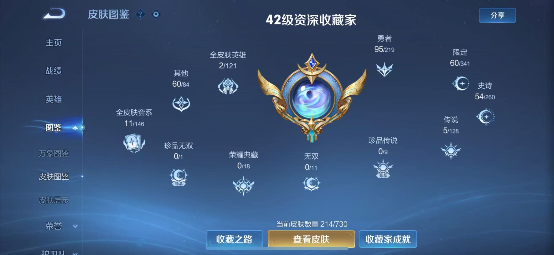 - PX_2104907-Q/至尊星耀/326皮肤/126英雄/1典藏/0珍品无双/0无双/0珍品传说/24传说/91史诗/10稀有英雄 【1 典藏皮肤】全息碎影 孙悟空, 【24 传说皮肤】胖达荣荣 梦奇,武圣 关羽,启明星使 虞姬,云霓雀翎 虞姬,白虎志 百里玄策,地狱火 孙悟空,仲夏夜之梦 貂蝉,影龙天霄 兰陵王,地狱之眼 宫本武藏,武陵仙君 诸葛亮,海洋之心 武则天,时雨天司 诸葛亮,炽阳神光