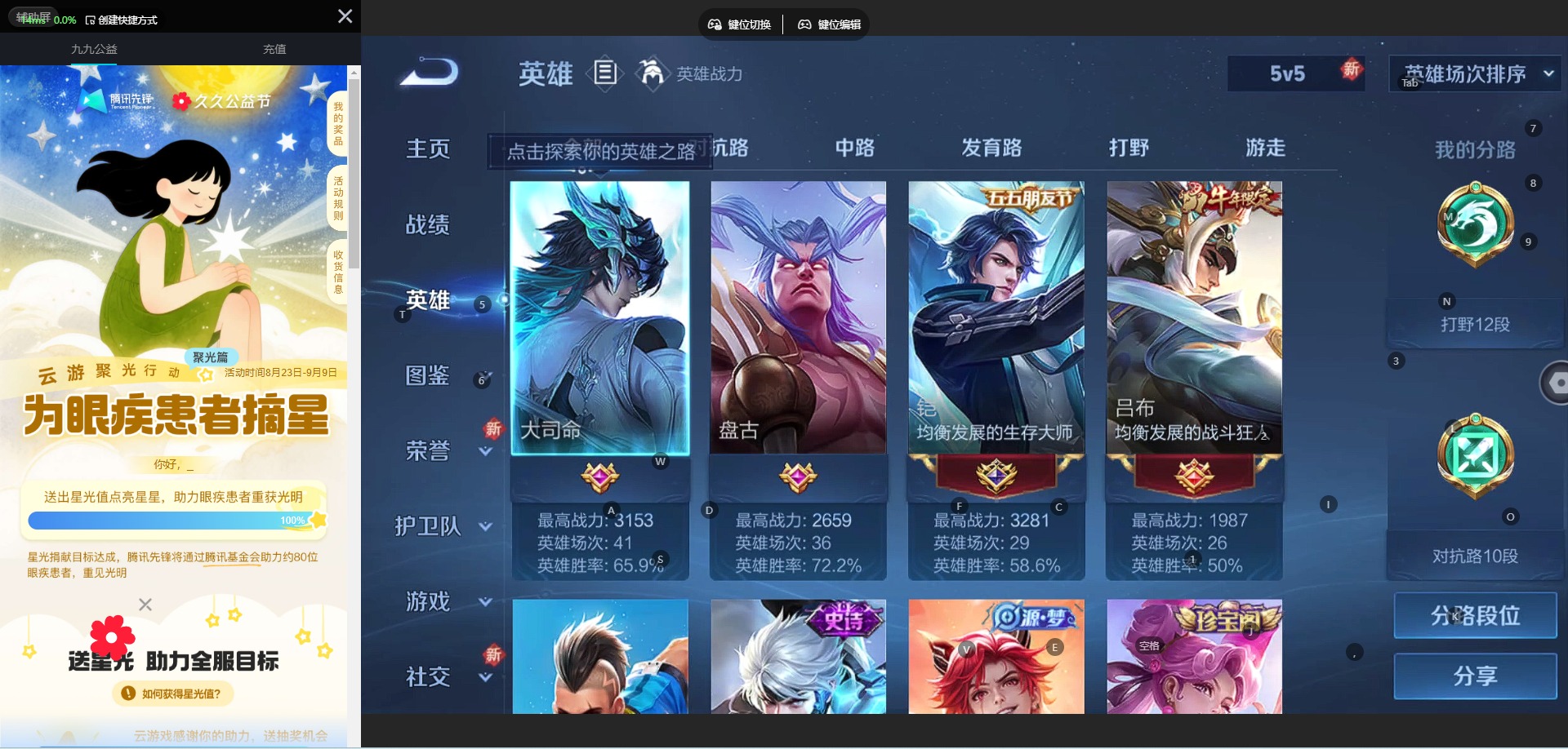 - [12312708]V5 4传说 124英雄 180皮肤 可修改实名 传说皮:幻光神枪 珍宝阁皮:优雅恋人,蔷薇恋人 限定皮:愿照·岁时盈(虞姬年限),逐霄战戟,鸣野蒿,夏侯惇霜北刀,至尊宝,高山流水,梁祝,李小龙 史诗皮:器灵·浮梦炉,星界战将,谪仙醉月,蒙犽顽岩魄,蔬乡物语(鲁班七号),紫霞仙子,电玩小子(小书包),黄金分割率,千年之狐,永昼,魅语,高渐离燃音魔法,蒙恬荣光圣徽,冰冠公主,偶像歌手,电玩·爆裂旋风,暗夜猫娘,龙骑士(小龙虾),猫狗日记-孙策,乱世虎臣,节奏热浪,女仆咖啡,摇滚巨星,水果甜心,绅士熊喵,天才门将,功夫厨神,德古拉伯爵,暗隐猎兽者,鬼剑武藏,心灵战警,拒霜思,乘风破浪,水晶猎龙者,箭羽风息,金属风暴,圣诞狂欢,鹰眼统帅