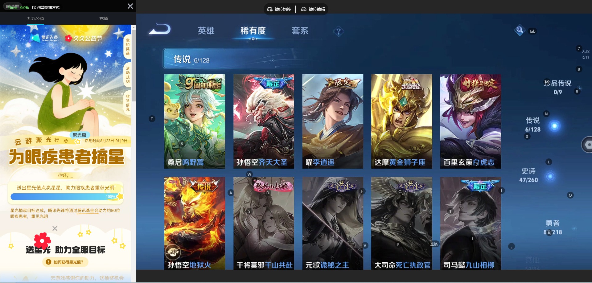 [12054132]V6 6传说 124英雄 174皮肤 可修改实名 优质装备:黄金狮子座,地狱火,李逍遥,涂山容容 珍宝阁皮:蔷薇恋人 限定皮:逐霄战戟,鸣野蒿,至尊宝,白虎志(电光耗子),神威(电光马子),齐天大圣,冰锋战神,梁祝,御风骁将(吕布年限),李小龙,逐梦之影,冰霜恋舞曲,山海·玄木吟(马可年限) 史诗皮:化蝶舞,龙之律动,炽弈燎原,破空之剑,百相守梦-百里守约,百相守梦-黄忠,白龙吟,黄金分割率,特工魅影,千年之狐,乱世虎臣,修罗,摇滚巨星,水果甜心,天才门将,星夜王子,暗隐猎兽者,幽灵船长,鬼剑武藏,纤云弄巧,繁星吟游(呼啦呼啦),缤纷独角兽,逐浪之夏,曙光守护者,箭羽风息,金属风暴,圣诞狂欢,鹰眼统帅,魅力维加斯,未来纪元-赵云