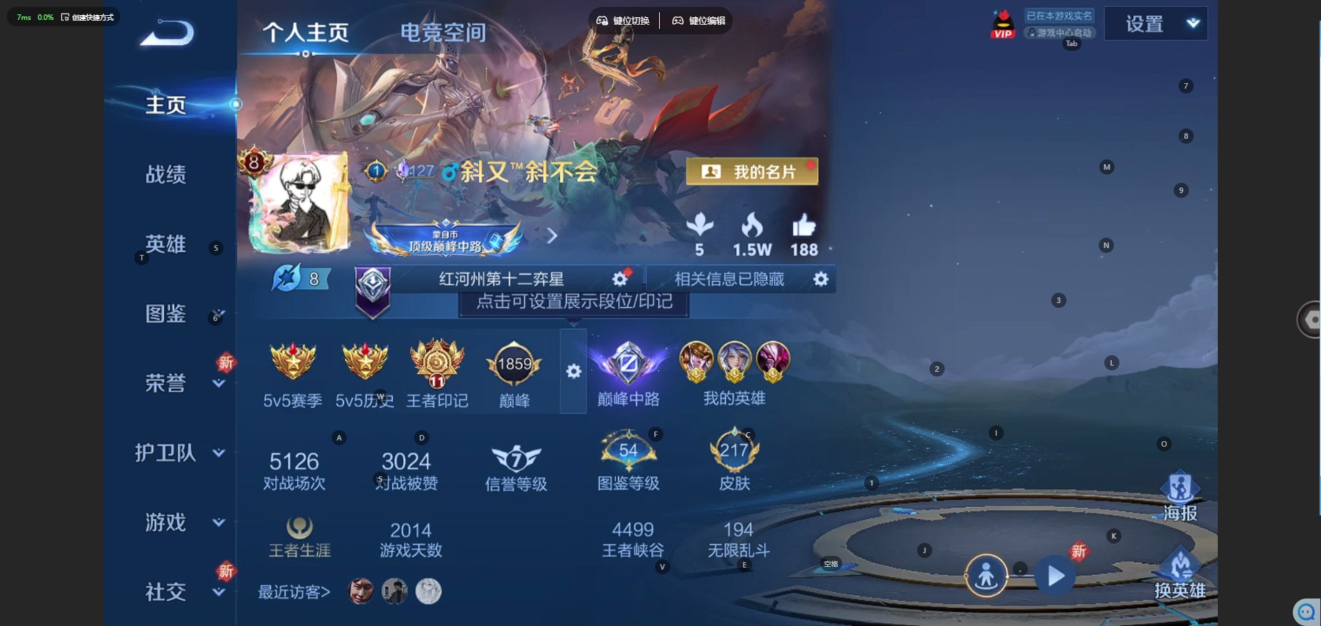 - [11820350]V8 1典藏 1无双 10传说 124英雄 225皮肤 可修改实名 优质装备:星域神启(倪克斯贼亮),碎月剑心(李白无双),炽阳神光,云霓雀翎,末日机甲-孙尚香(绿蚂蚱),音你心动-周瑜,无双飞将 珍宝阁皮:妄想食味 限定皮:愿照·岁时盈(虞姬年限),愿照·众生和(妲己年限),愿照·千秋盛(女娲年限),至尊宝,绯月行,飞衡(韩信年限),五谷丰年,梁祝,天狼狩猎者,天狼征服者,李小龙,辉光之辰,神器·万象笔,山海·玄木吟(马可年限) 史诗皮:化蝶舞,星界战将,怒海争锋,东方月初,海诺心动手记,琥珀纪元伽罗,百相守梦-百里守约,百相守梦-黄忠,紫霞仙子,电玩小子(小书包),黄金分割率,特工魅影,千年之狐,蒙恬荣光圣徽,无限星赏官,冰冠公主,青蛇,偶像歌手,晚萤,末日机甲-吕布,猫狗日记-孙策,乱世虎臣,节奏热浪,摇滚巨星,水果甜心,天才门将,星夜王子,心灵骇客,德古拉伯爵,暗隐猎兽者,鬼剑武藏,心灵战警,舞动绿茵,地狱岩魂,纤云弄巧,拒霜思,缤纷独角兽,乘风破浪,逐浪之夏,水晶猎龙者,曙光守护者,金属风暴,原初追逐者,圣诞狂欢,圣诞恋歌,鹰眼统帅,魅力维加斯,黎明之约,赏金猎手,无心,未来纪元-赵云