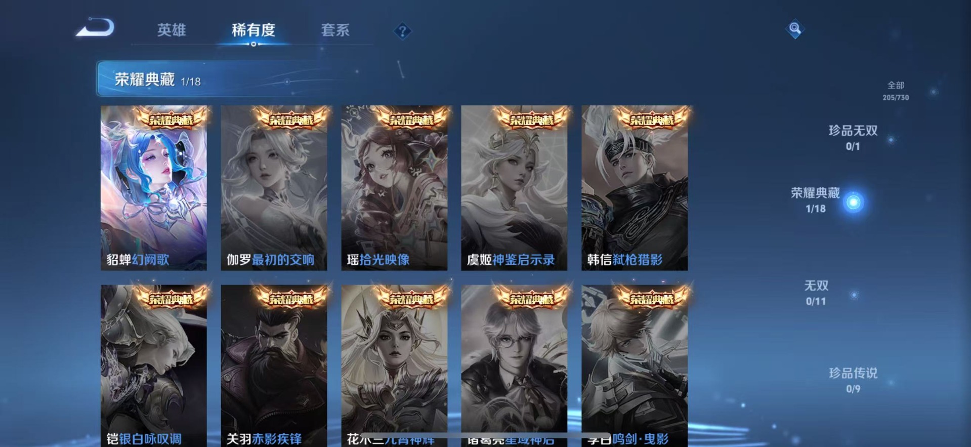 后羿如梦令,公孙离祈雪灵祝,裴擒虎李小龙,上官婉儿梁祝,上官婉儿神器·万象笔,上官婉儿天狼绘梦者,马可波罗逐梦之星,马可波罗山海·玄木吟,女娲补天,孙悟空至尊宝,马超神威,韩信傲雪梅枪