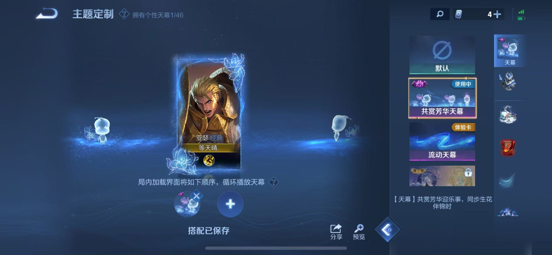 伽罗太华,典韦岱宗,后羿辉光之辰,诸葛亮时雨天司,裴擒虎李小龙,上官婉儿梁祝,上官婉儿天狼绘梦者,马可波罗深海之息,桑启鸣野蒿,孙悟空孙行者,孙悟空至尊宝,马超神威,妲己时之彼端,韩信傲雪梅枪,韩信飞衡,韩信逐梦之影,百里守约朱雀志,澜愿照·九州拓,关羽武圣