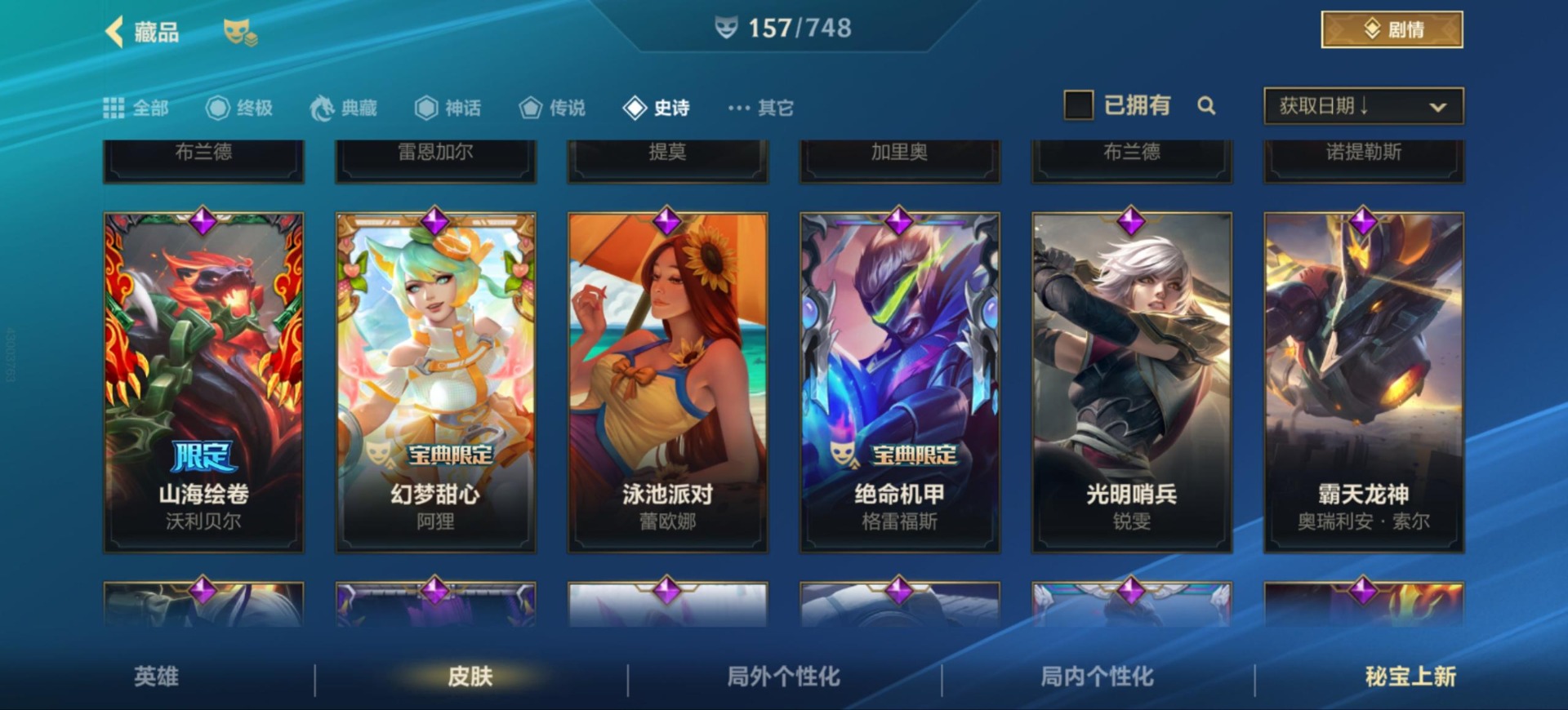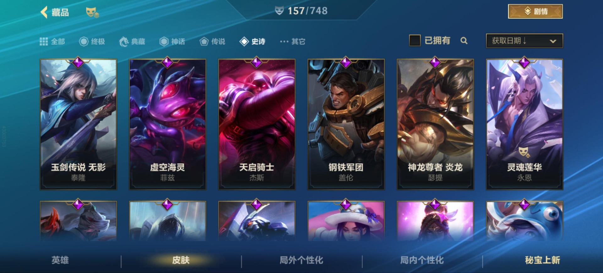 - [12294058]V7 1典藏 3传说 123英雄 195皮肤 可修改实名 优质装备:全息碎影(猴子典藏),零号·赤焰,音你闪耀(rap皮),涂山容容 珍宝阁皮:万物之道,蔷薇恋人 限定皮:逐霄战戟,至尊宝,遇见飞天,高山流水,梁祝,李小龙,无尽星芒 史诗皮:白龙吟,黄金分割率,特工魅影,千年之狐,冰冠公主,末日机甲-吕布,猫狗日记-孙策,猫狗日记-大乔,乱世虎臣,女仆咖啡,摇滚巨星,水果甜心,天才门将,功夫厨神,德古拉伯爵,鬼剑武藏,舞动绿茵,繁星吟游(呼啦呼啦),缤纷独角兽,乘风破浪,逐浪之夏,水晶猎龙者,热力回旋,金属风暴,原初追逐者,圣诞狂欢,鹰眼统帅,魅力维加斯,赏金猎手,无心