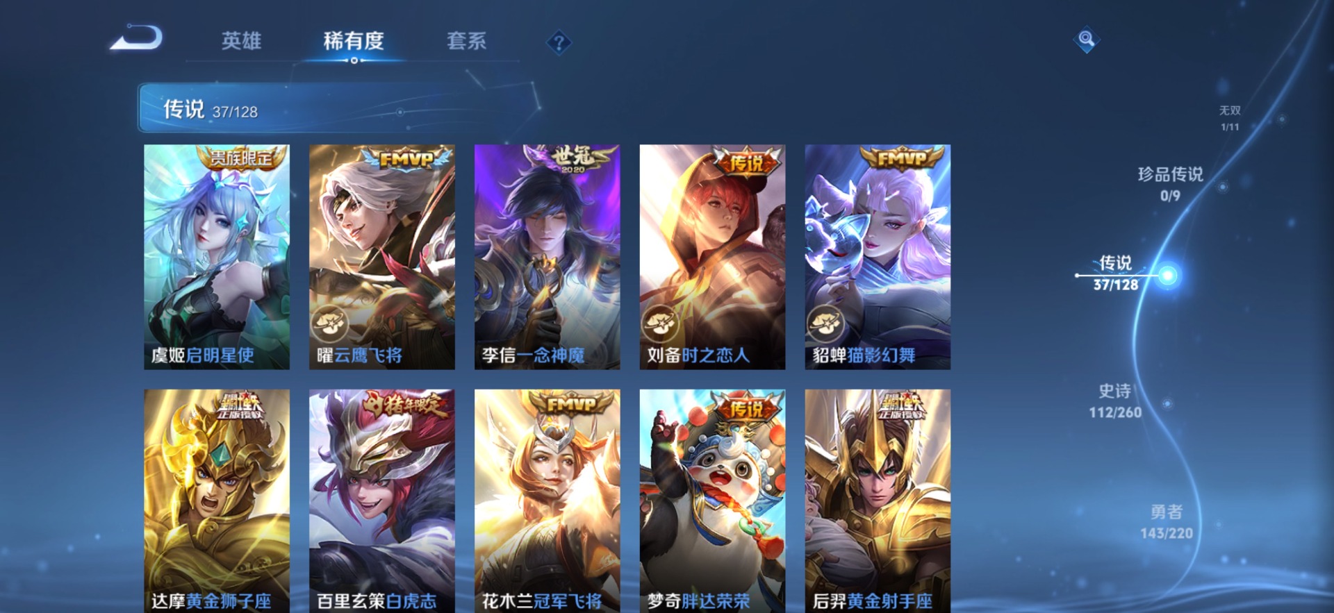 - [11884191]V8 1典藏 1珍品传说 22传说 125英雄 347皮肤 可修改实名 优质装备:九霄神辉(木兰典藏),怪盗基德,绛天战甲(鸡嘴战神),黄金白羊座,猫影幻舞,久胜战神,炽阳神光,一念神魔,地狱之眼,李逍遥,时之恋人-刘备(电焊工),淬星耀世,超时空战士-狄仁杰,无双飞将,音你闪耀(rap皮),山海·苍雷引(电光曜子),澜逐花归海 传说皮:祥瑞亨通,幻光神枪 珍宝阁皮:妄想食味,优雅恋人,蔷薇恋人 限定皮:愿照·九州拓(澜年限),鸣野蒿,至尊宝,傲雪梅枪,白晶晶,时雨天司(水龙头),神威(电光马子),飞衡(韩信年限),玄嵩(庄周年限),遇见飞天,高山流水,诗剑行,五谷丰年,冰锋战神,梁祝,岱宗(典韦年限),李小龙,逐梦之影,朱雀志(守约年限),默契交锋-花木兰,孙行者,玉兔公主 史诗皮:灵蛊蚀心,星界战将,谪仙醉月,茶境仙,百相守梦-百里守约,紫霞仙子,白龙吟,黄金分割率,特工魅影,千年之狐,永昼,江河有灵,魅语,百解令(蒙犽),高渐离燃音魔法,蒙恬荣光圣徽,青蛇,偶像歌手,电玩·爆裂旋风,暗夜猫娘,百相守梦(关羽),龙骑士(小龙虾),末日机甲-吕布,猫狗日记-孙策,猫狗日记-大乔,乱世虎臣,节奏热浪,修罗,女仆咖啡,摇滚巨星,水果甜心,绅士熊喵,天才门将,星夜王子,心灵骇客,功夫厨神,德古拉伯爵,暗隐猎兽者,幽灵船长,鬼剑武藏,心灵战警,乐园奇幻夜,舞动绿茵,地狱岩魂,诗语江南,繁星吟游(呼啦呼啦),拒霜思,缤纷独角兽,乘风破浪,逐浪之夏,水晶猎龙者,曙光守护者,箭羽风息,金属风暴,原初追逐者,圣诞狂欢,圣诞恋歌,鹰眼统帅,暗夜贵公子,魅力维加斯,黎明之约,无心,未来纪元-赵云