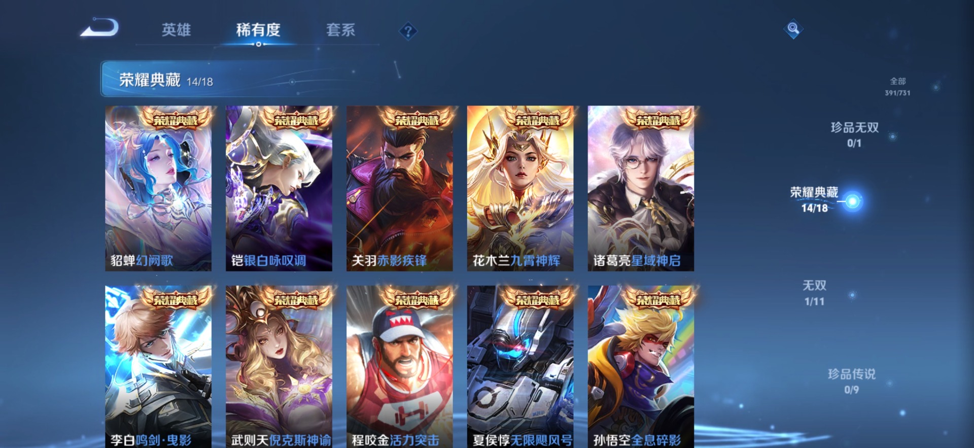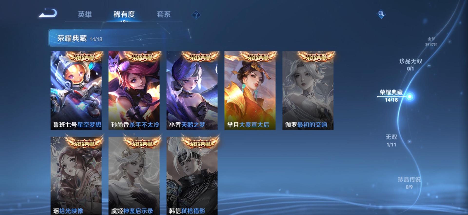 刘备时之恋人,铠绛天战甲,赵云淬星耀世,干将莫邪画中仙,李信一念神魔,达摩黄金狮子座,镜炽阳神光,周瑜音你心动,貂蝉猫影幻舞,艾琳觅芳踪,西施游龙清影,狄仁杰神器·狴犴令,曜云鹰飞将