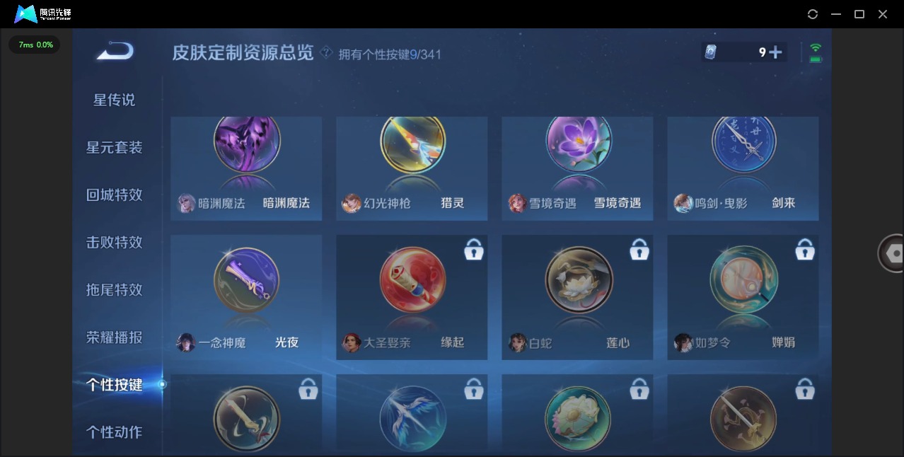 夏侯惇匿光决锋者,铠青龙志,廉颇寅虎·御盾,裴擒虎李小龙,裴擒虎天狼狩猎者,裴擒虎寅虎·赤拳,上官婉儿梁祝,桑启鸣野蒿,孙悟空孙行者,孙悟空大圣娶亲,马超神威,韩信傲雪梅枪,百里守约朱雀志,关羽武圣