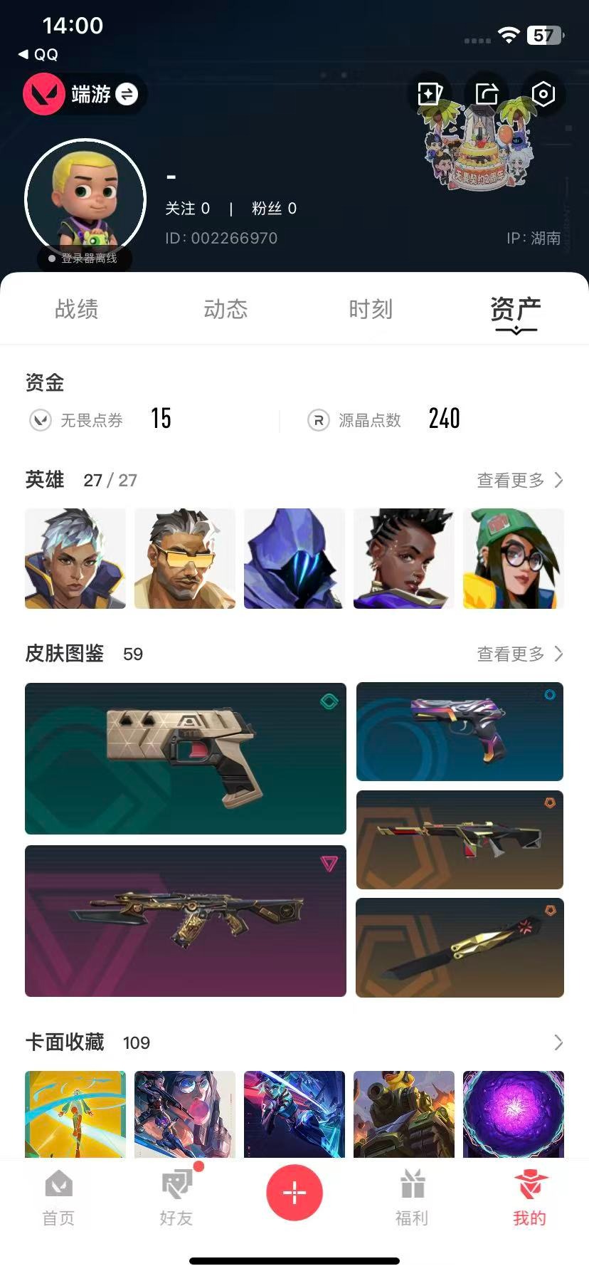 [12057272]10橙皮 1金皮 7紫皮 59皮肤 27英雄 109卡面 740已用源晶 青铜 优质装备:狂徒-塑水宗,幻影-源能者娱乐系统,狂徒-混沌序曲,狂徒-盖亚的复仇,幻影-紫阙金琅2.0,冥驹-离子武器,狂徒-日冕雄师,戍卫-天界神兵,天玄刀,黑波之刃,幻影-源能者危机001,匕首-超限闪存,鬼魅-耀鳞威龙 亮点皮肤:幻影-2022全球冠军赛,2022全球冠军赛 蝴蝶刀 套装:2022全球冠军赛 佩枪皮肤:正义-西部未来 近战武器皮肤:短剑-流星兵团,短剑-珍珠棘贝