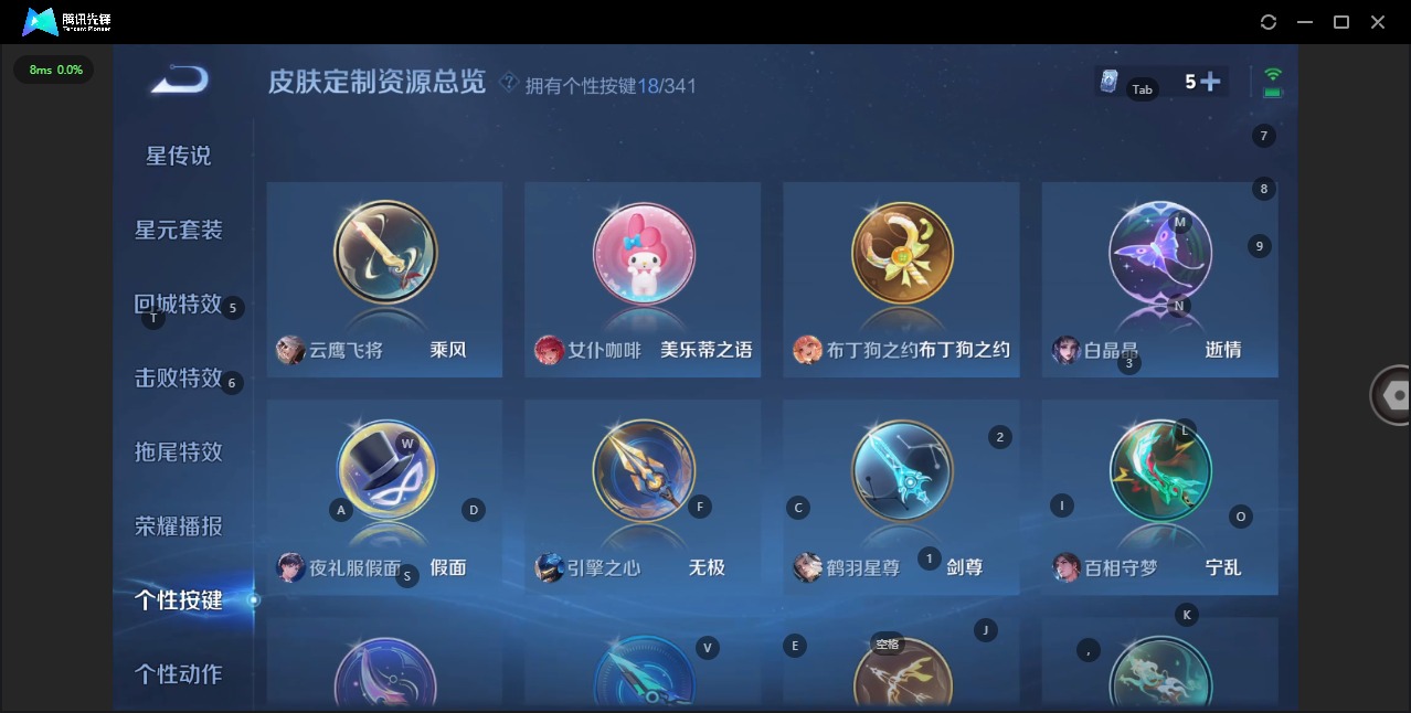 伽罗天狼溯光者,典韦岱宗,鲁班七号乒乒小将,鲁班七号寅虎·瑞焰,后羿如梦令,镜匿光追影者,杨玉环寅虎·心曲,裴擒虎李小龙,裴擒虎寅虎·赤拳,上官婉儿梁祝,李白诗剑行,马可波罗山海·玄木吟,孙悟空孙行者,芈月白晶晶,孙悟空美猴王,马超神威,赵云引擎之心,韩信飞衡,韩信逐梦之影