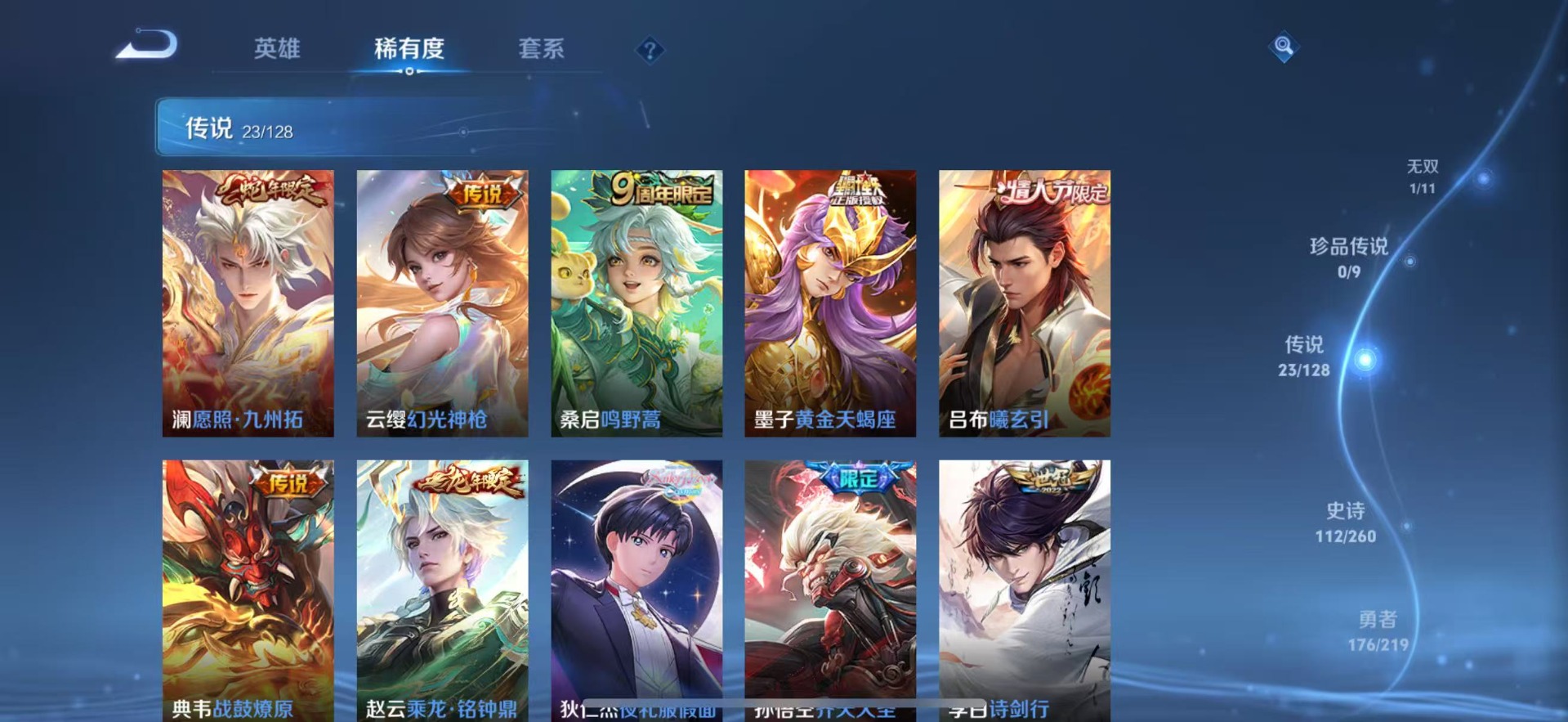 - [12296515]V10 7典藏 36传说 125英雄 410皮肤 典藏英雄武则天 可修改实名 优质装备:星空梦想(太空人),倪克斯神谕(宇宙婆娘),无限飓风号(高达),杀手不太冷,大秦宣太后,鸣剑·曳影,全息碎影(猴子典藏),黄金狮子座,黄金射手座,冠军飞将,云鹰飞将(小将军),绛天战甲(鸡嘴战神),黄金白羊座,猫影幻舞,久胜战神,炽阳神光,一念神魔,云霓雀翎,末日机甲-孙尚香(绿蚂蚱),地狱火,仲夏夜之梦(大飞蛾),零号·赤焰,海洋之心,地狱之眼,飞鸢探春,胖达荣荣,李逍遥,乞巧织情,游龙清影(小青龙),淬星耀世,超时空战士-狄仁杰,妄想实况,艾琳觅芳踪 珍宝阁皮:蔷薇恋人,女武神,玩趣恶龙 限定皮:至尊宝,白虎志(电光耗子),凤求凰(白切鸡),凤凰于飞,太华(伽罗年限),梅西,武陵仙君(小桃花),傲雪梅枪,时之彼端,白鹤梁神女,魔法小厨娘,白晶晶,时雨天司(水龙头),神威(电光马子),飞衡(韩信年限),瑞麟志(木兰年限),遇见飞天,高山流水,五谷丰年,青龙志(铠年限),冰锋战神,天狼运算者,游园惊梦,梁祝,御风骁将(吕布年限),天狼狩猎者,龙胆,逐梦之翼,逐梦之星,烈魂,岱宗(典韦年限),天狼溯光者,虎魄,天狼征服者,奔雷神使(牛魔年限),祈雪灵祝(雪兔子),天狼绘梦者,李小龙,逐梦之影,逐梦之光,玄武志(苏烈年限),朱雀志(守约年限),永曜之星,辉光之辰,如梦令-嫦娥,如梦令-后羿,霸王别姬-项羽,霸王别姬-虞姬,奇迹圣诞,默契交锋-兰陵王,默契交锋-花木兰,猪悟能,一生所爱,大圣娶亲,引擎之心,天魔缭乱,青春决赛季,冰霜恋舞曲,云端筑梦师,乒乒小将,蜜橘之夏,神奇女侠,美猴王,匿光追影者,女儿国国王 史诗皮:遇见神鹿,紫霞仙子,苍穹之光,电玩小子(小书包),白龙吟,黄金分割率,特工魅影,千年之狐,江河有灵,魅语,高渐离燃音魔法,蒙恬荣光圣徽,无限星赏官,冰冠公主,偶像歌手,晚萤,电玩·爆裂旋风,暗夜猫娘,龙骑士(小龙虾),末日机甲-吕布,猫狗日记-孙策,猫狗日记-大乔,时之恋人-孙尚香,乱世虎臣,节奏热浪,修罗,女仆咖啡,摇滚巨星,水果甜心,绅士熊喵,天才门将,星夜王子,心灵骇客,功夫厨神,德古拉伯爵,暗隐猎兽者,幽灵船长,鬼剑武藏,心灵战警,舞动绿茵,地狱岩魂,诗语江南,纤云弄巧,繁星吟游(呼啦呼啦),拒霜思,缤纷独角兽,乘风破浪,逐浪之夏,月团寄思,水晶猎龙者,曙光