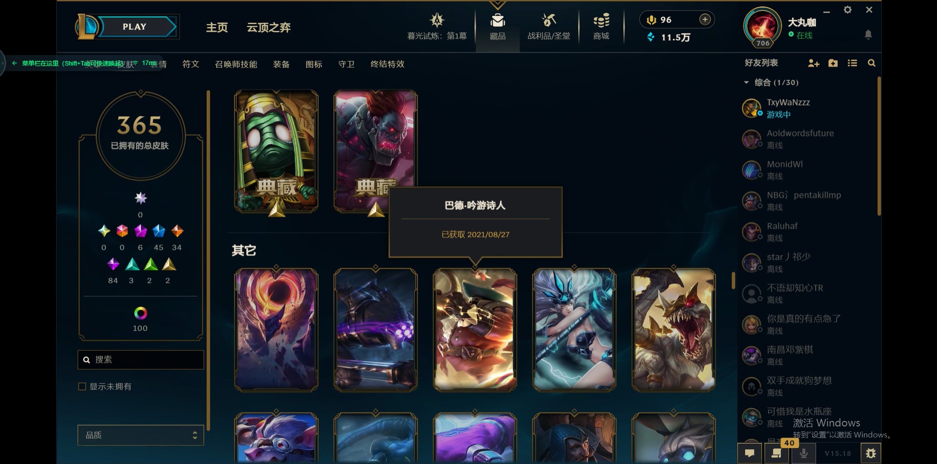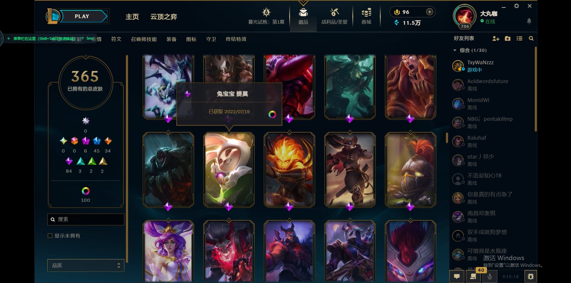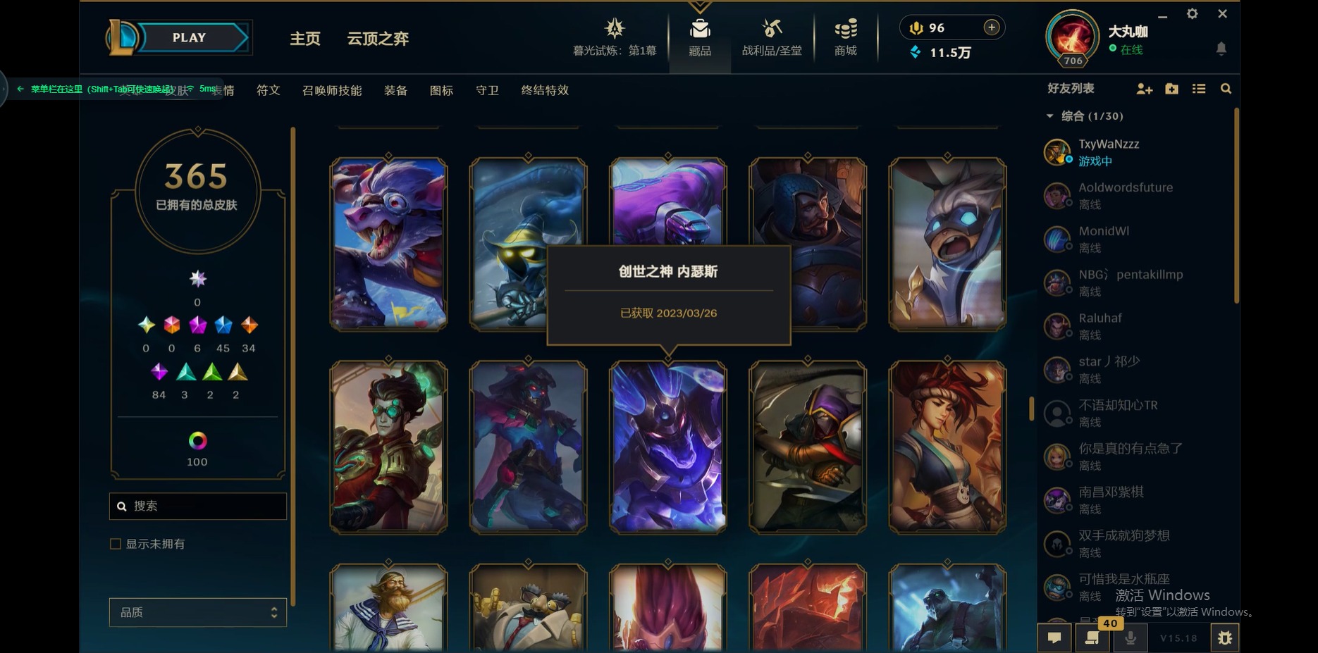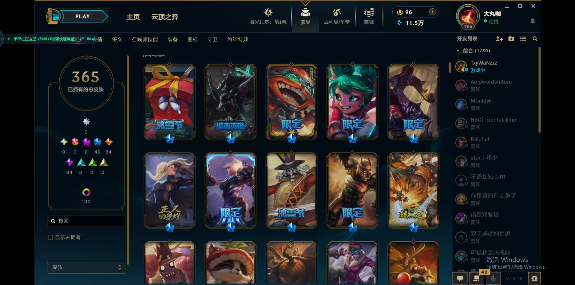 [12060594]6神话 45限定 34传说 84史诗 365皮肤 137炫彩 171英雄 可二次 可修改实名 优质装备:至臻 灵能特工 伊泽瑞尔,源代码 乐芙兰,防爆天使 凯尔,暗影 沃里克,巧克力工坊 波比,都铎王朝 图奇,冠军之刃 锐雯,警用试作体K-9 内瑟斯,蒙多蒙多,密林猎手 提莫,糖果使徒 费德提克,奥德赛 吉格斯,玉净夜叉 凯特琳 炫金神机,雾雨之刃 锐雯,天煞 劫 恒星游历者,无畏骑士 瑟庄妮 赤子初心,外星装甲 库奇,可爱可爱粉红红 布里茨,净雪之月 莫甘娜 冬虹,银龙裁夬 泰隆 潜龙在渊,魔女 阿卡丽 虚荣 海克斯:海克斯 雷克顿,海克斯 斯维因 限定:玉剑传说 舞龙卫 赛季限定皮:胜利凤凰 艾尼维亚,胜利之运 崔斯特,胜利剑圣 易,胜利女神 娑娜,胜利巨口 克格莫,胜利之王 泰达米尔,胜利女神 莫甘娜,胜利女神 希维尔,胜利之树 茂凯,胜利枪神 格雷福斯,胜利女神 奥利安娜,胜利之剑 剑魔,胜利枪神 卢锡安,胜利机器人 布里茨,胜利女神 瑟庄妮 冠军限定系列:S1FNC 迦娜,S3 SKT T1 贾克斯,S3 SKT T1 婕拉,S4 SSW 泰隆,S4 SSW 炼金,S7 SSG 洛 冰雪节限定:“主人不要我了” 阿木木,胡桃夹子 小丑,魄罗骑士 瑟庄妮,圣诞驯鹿 克格莫,邪恶圣诞老人 维迦,雪默丁格 泳池派对:泳池派对 吉格斯,泳池派对 厄运小姐 万圣节限定:南瓜头 费德提克 年限:天龙之子 斯莫德,龙年 泰隆,猴年 孙悟空 周年:2周年 德莱厄斯,10周年 安妮,10周年 凤凰