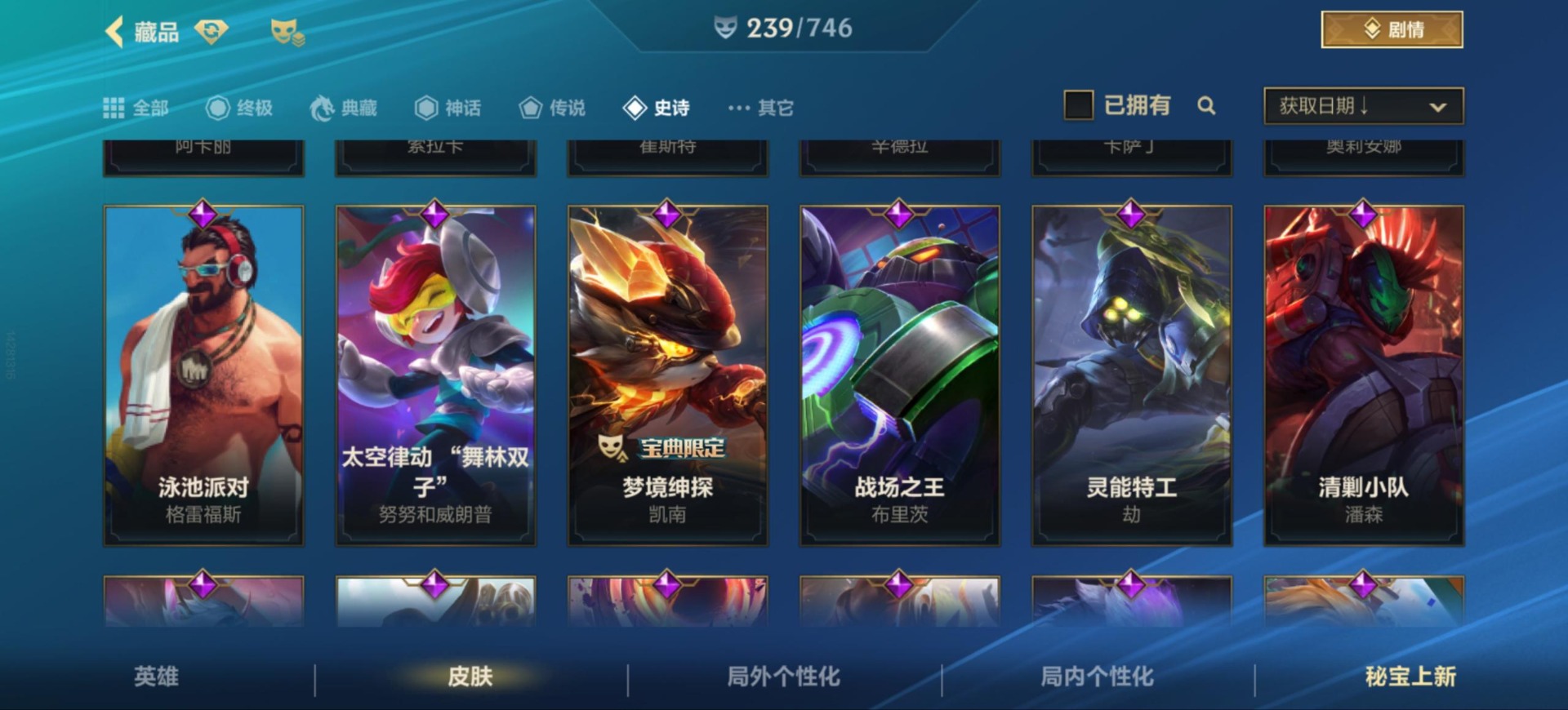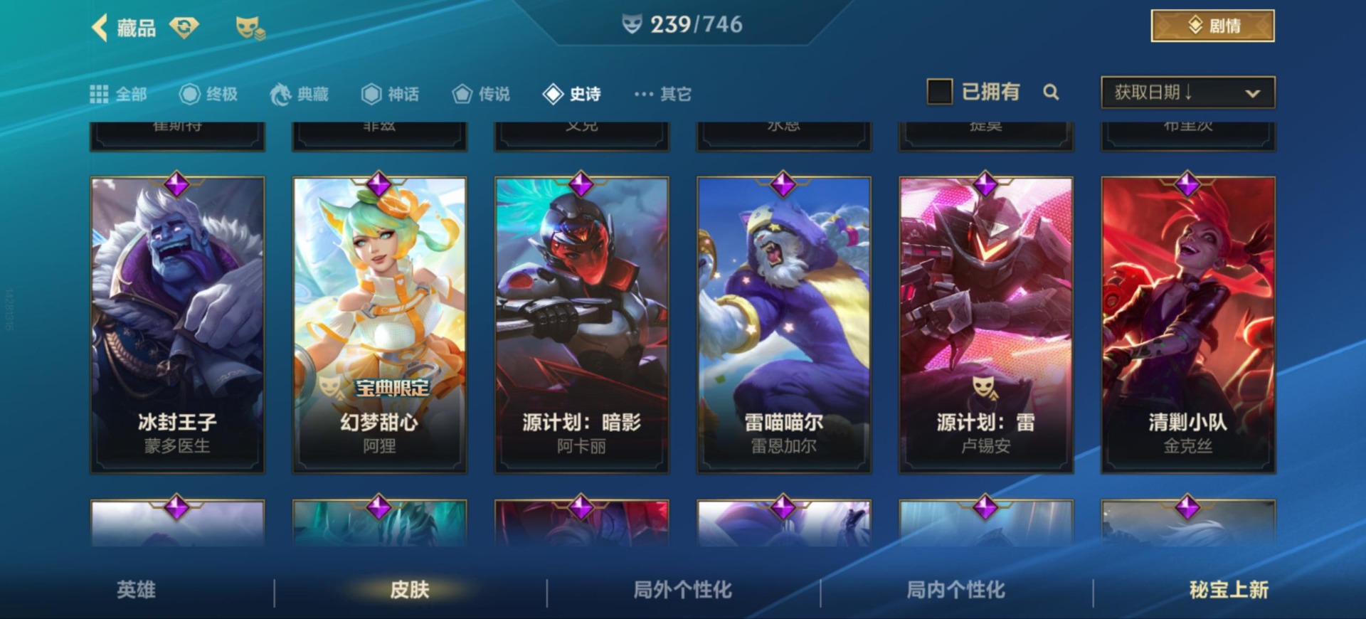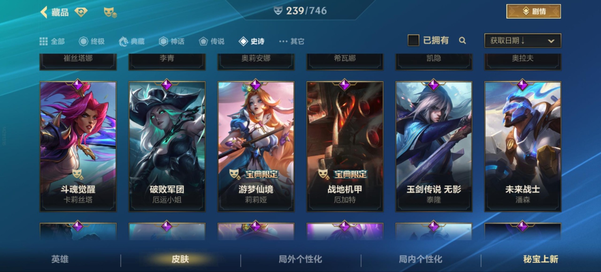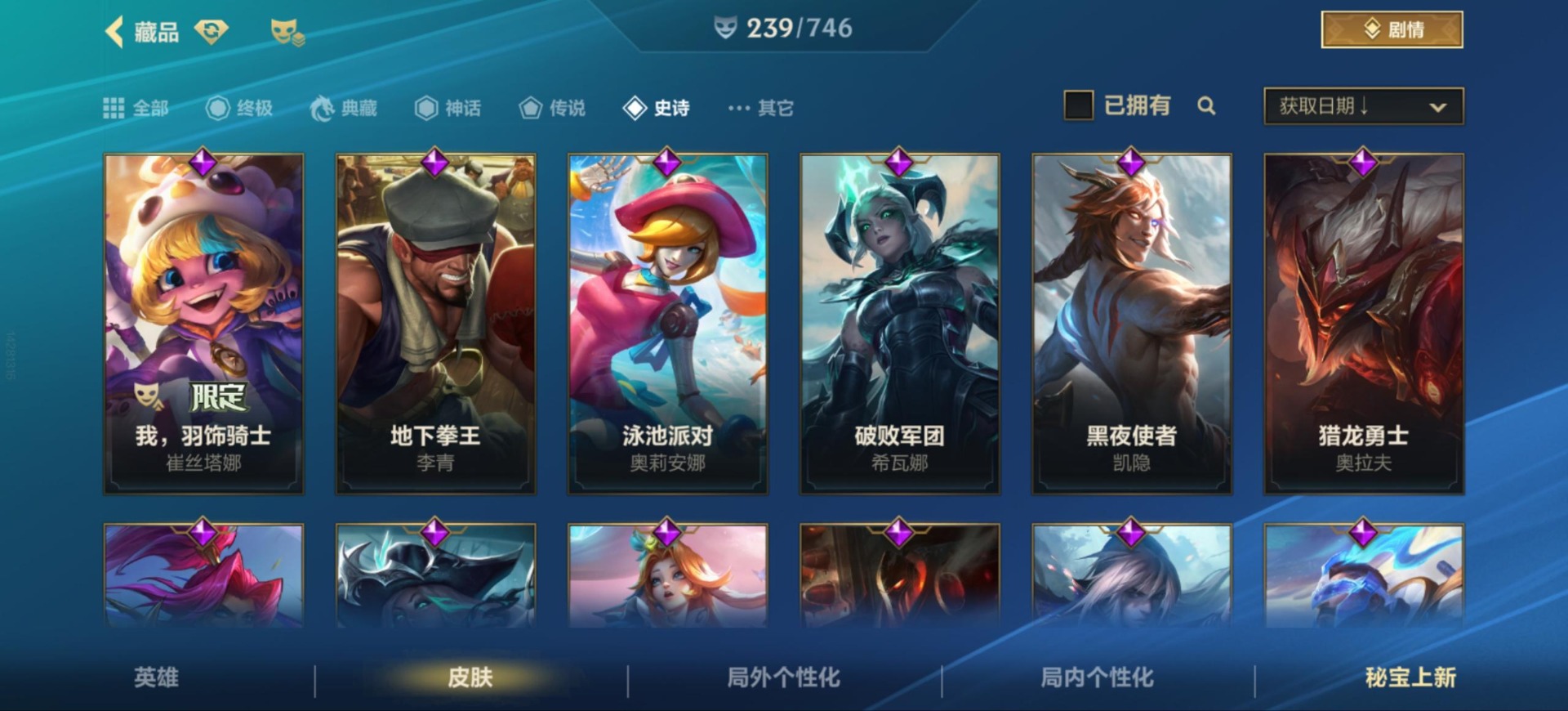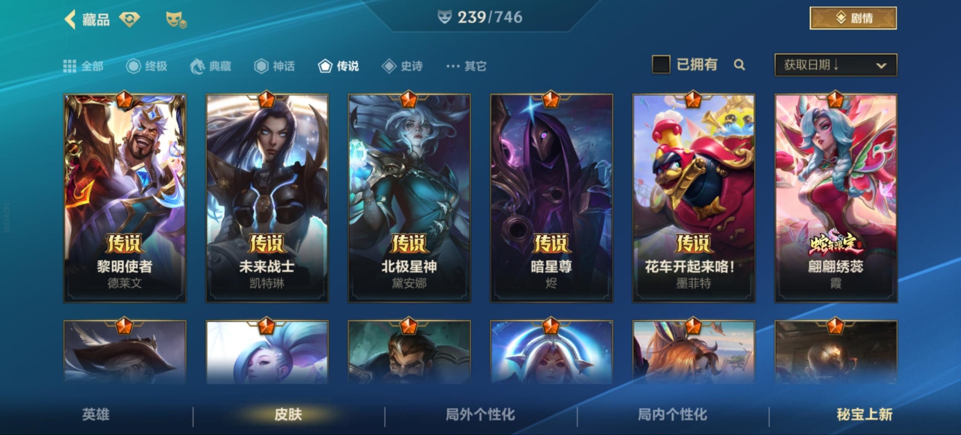 - [11624653]V7 4传说 119英雄 166皮肤 可修改实名 优质装备:猫影幻舞,末日机甲-孙尚香(绿蚂蚱),仲夏夜之梦(大飞蛾) 珍宝阁皮:蔷薇恋人 限定皮:凤凰于飞,太华(伽罗年限),白晶晶,遇见飞天,高山流水,五谷丰年,幽恒(沐浴露),游园惊梦,梁祝,逐梦之音,李小龙,如梦令-嫦娥,霸王别姬-虞姬,一生所爱,蜜橘之夏 史诗皮:紫霞仙子,永昼,江河有灵,白蛇,魅语,晚萤,猫狗日记-大乔,修罗,女仆咖啡,水果甜心,星夜王子,心灵骇客,舞动绿茵,纤云弄巧,繁星吟游(呼啦呼啦),拒霜思,缤纷独角兽,乘风破浪,水晶猎龙者,金属风暴,圣诞恋歌,鹰眼统帅,魅力维加斯,奇遇舞章