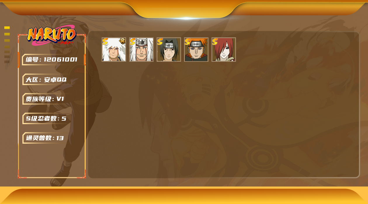 [12061001]V1 5S忍 18A忍 13通灵 515.1W战力 可二次 可修改实名 优质装备:长门「秽土转生」 S级忍者:自来也 「舞之豪杰」,宇智波鼬 「须佐能乎」,佩恩「天道」,自来也