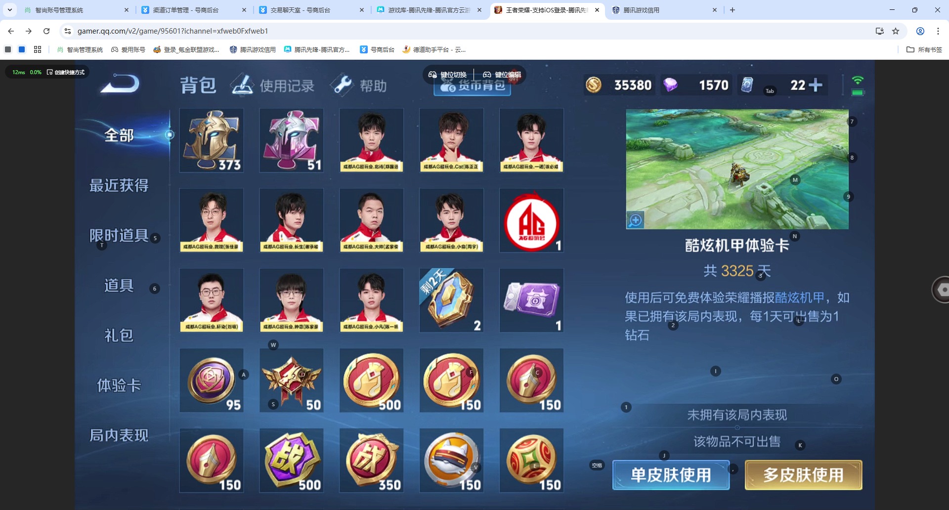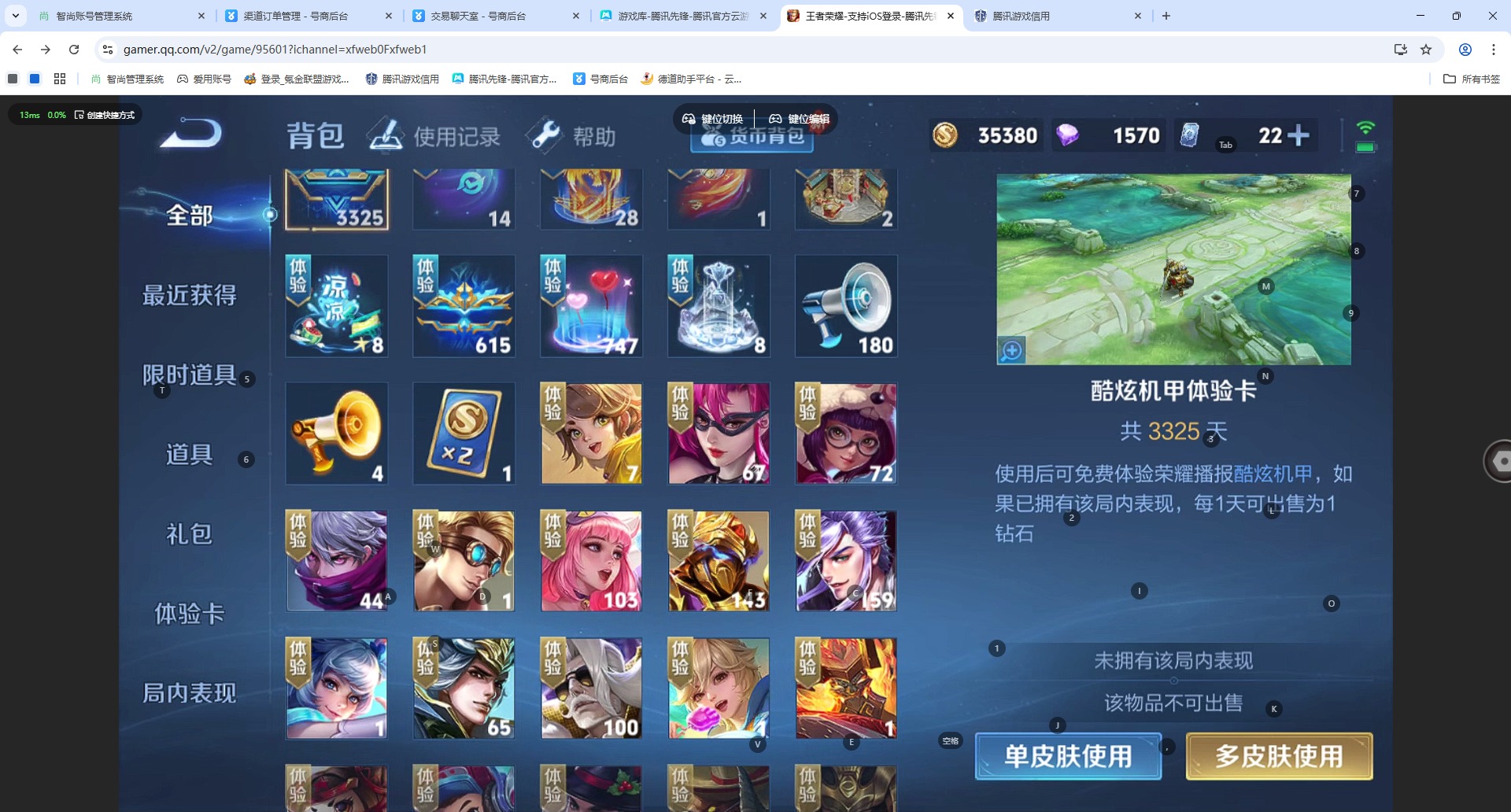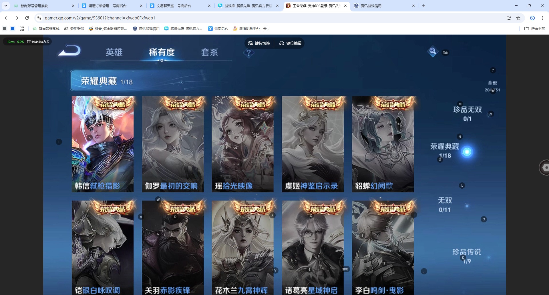- [12176067]V6 4传说 123英雄 147皮肤 可修改实名 优质装备:零号·赤焰,音你闪耀(rap皮) 传说皮:幻光神枪 珍宝阁皮:蔷薇恋人,女武神 限定皮:陌上桑,鸣野蒿,李小龙,引擎之心,乒乒小将 史诗皮:魅语,蒙恬荣光圣徽,冰冠公主,电玩·爆裂旋风,节奏热浪,女仆咖啡,水果甜心,天才门将,心灵骇客,功夫厨神,鬼剑武藏,心灵战警,地狱岩魂,纤云弄巧,繁星吟游(呼啦呼啦),乘风破浪,逐浪之夏,水晶猎龙者,金属风暴,圣诞狂欢,鹰眼统帅,魅力维加斯,黎明之约,未来纪元-赵云