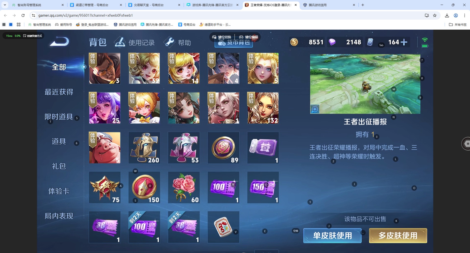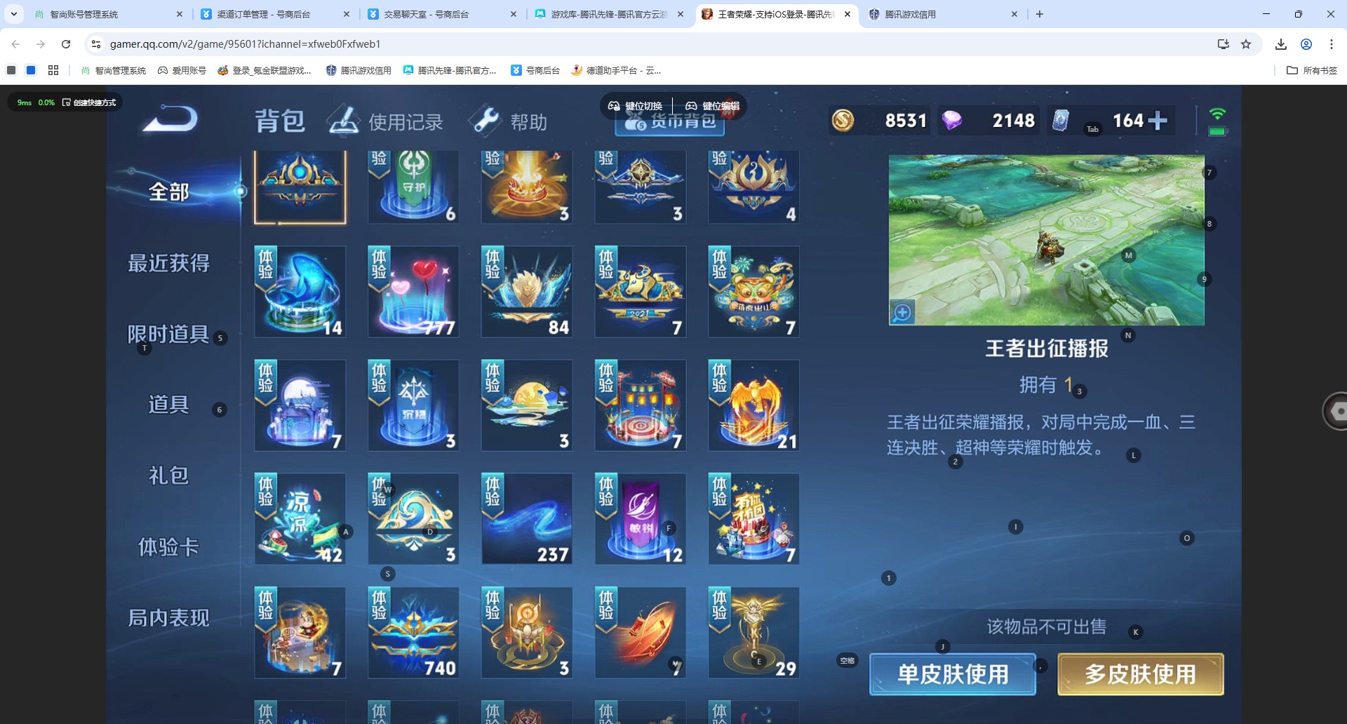 - [12106043]V7 1典藏 8传说 121英雄 119皮肤 可修改实名 优质装备:九霄神辉(木兰典藏),炽阳神光,末日机甲-孙尚香(绿蚂蚱),乞巧织情,时之恋人-刘备(电焊工),淬星耀世,无双飞将,琥珀纪元马超 珍宝阁皮:妄想食味 限定皮:神威(电光马子),齐天大圣,李小龙 史诗皮:紫霞仙子,江河有灵,魅语,高渐离燃音魔法,蒙恬荣光圣徽,冰冠公主,晚萤,暗夜猫娘,猫狗日记-孙策,时之恋人-孙尚香,节奏热浪,摇滚巨星,水果甜心,暗隐猎兽者,鬼剑武藏,繁星吟游(呼啦呼啦),缤纷独角兽,乘风破浪,逐浪之夏,水晶猎龙者,热力回旋,原初追逐者,圣诞狂欢,鹰眼统帅,魅力维加斯,赏金猎手,未来纪元-赵云,玫瑰异探