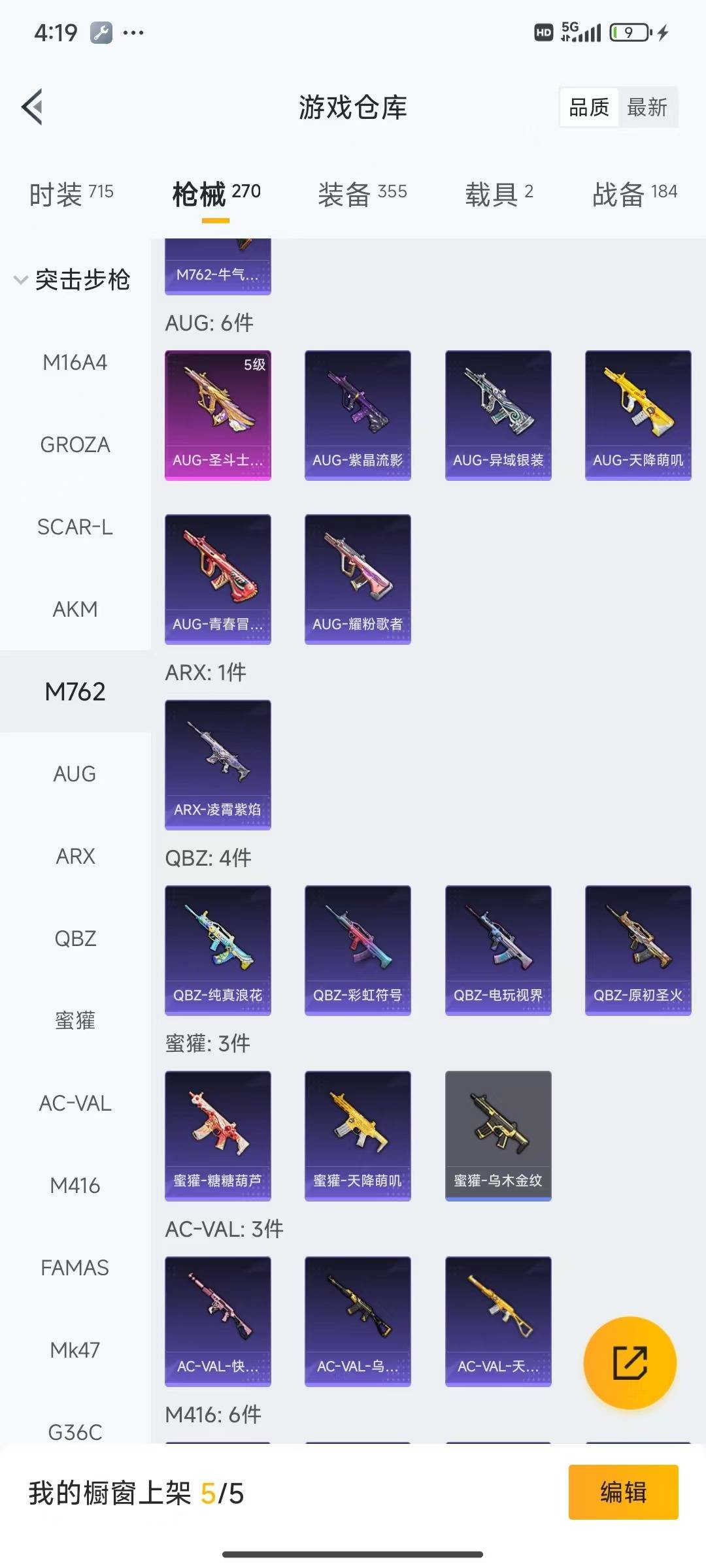 GROZA-镜光银凌,M762-青锋波束,Kar98K-巳巳如意,Kar98K-创世·救赎,P90-金丰海韵