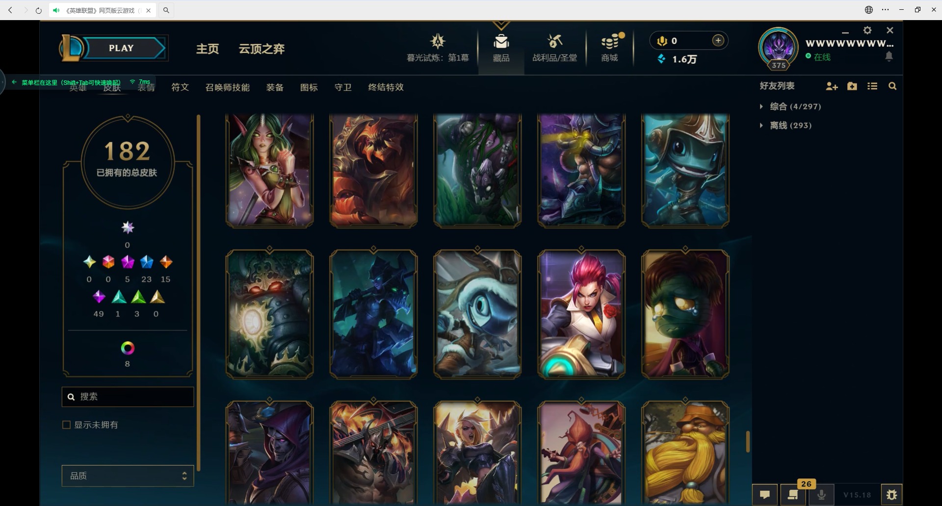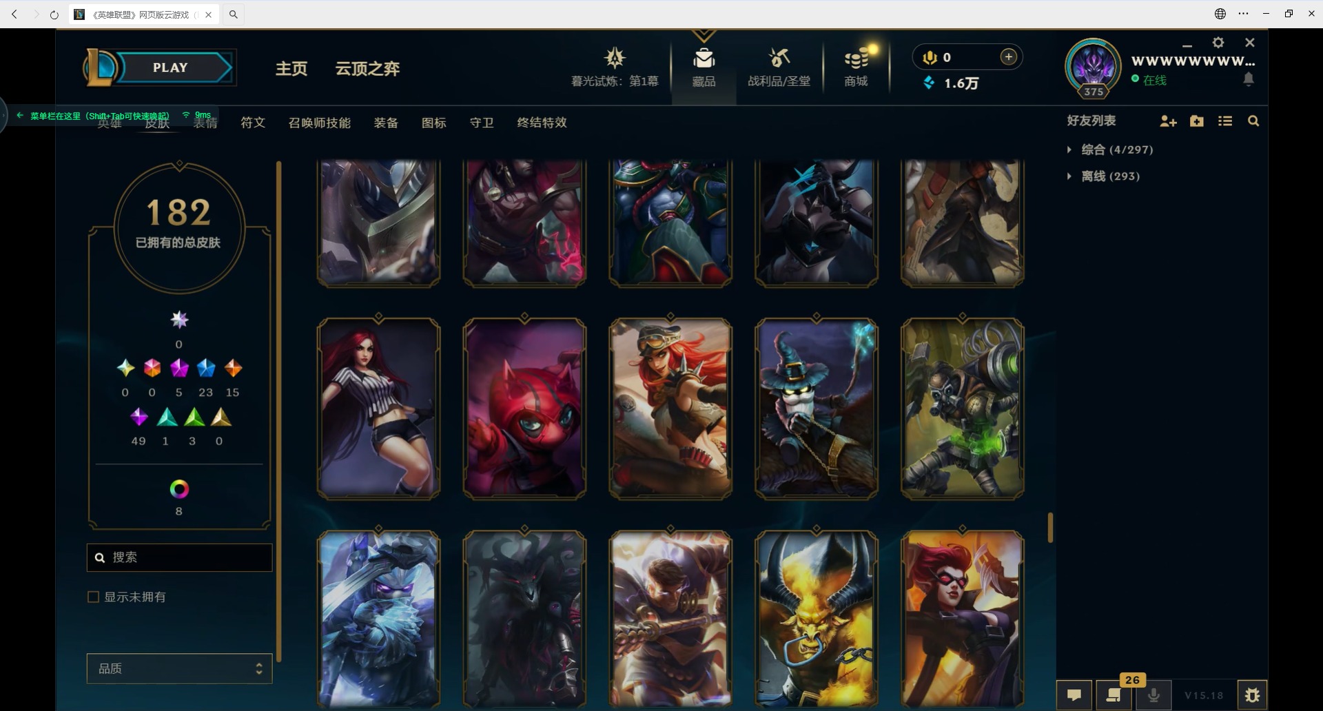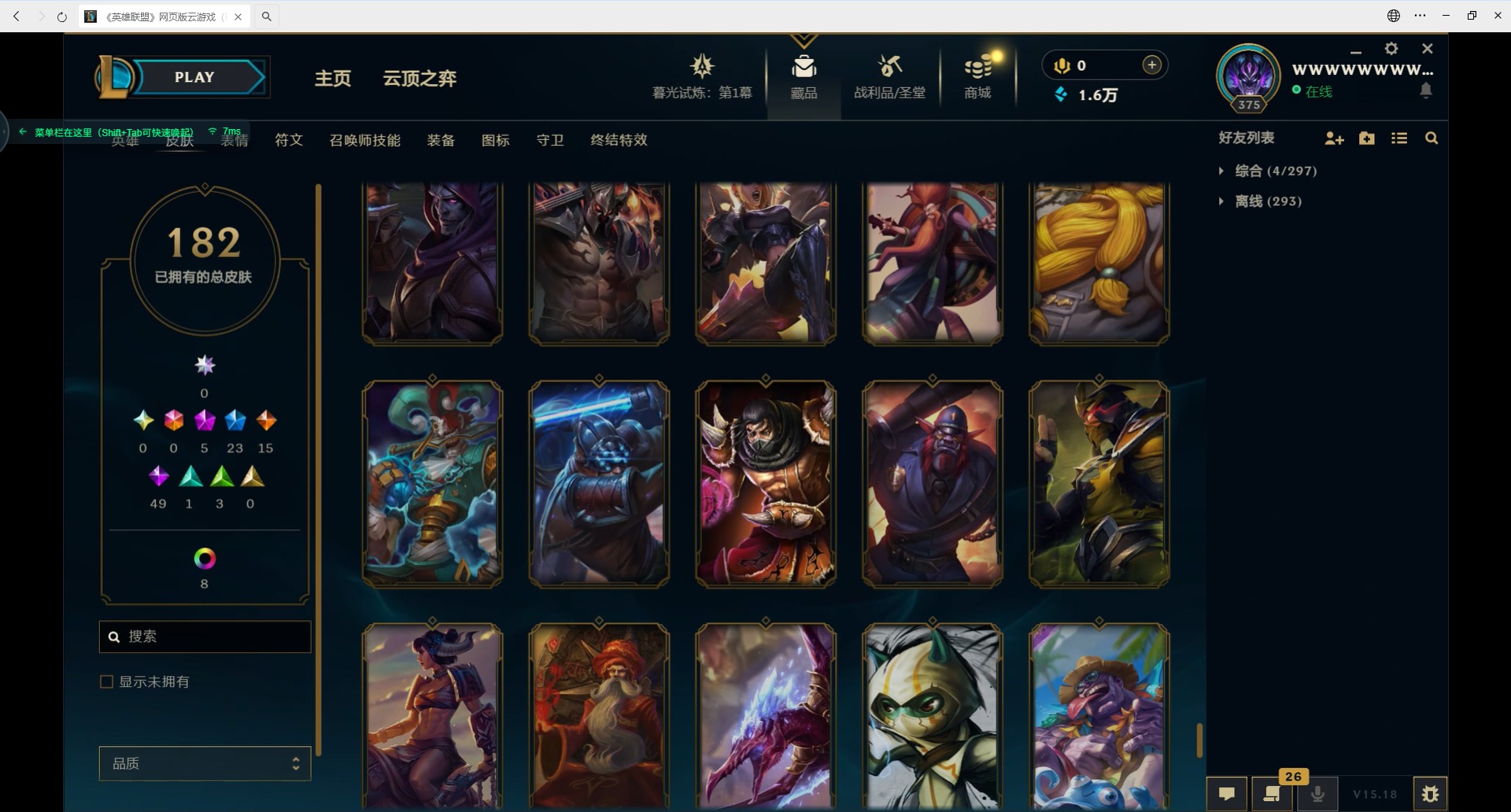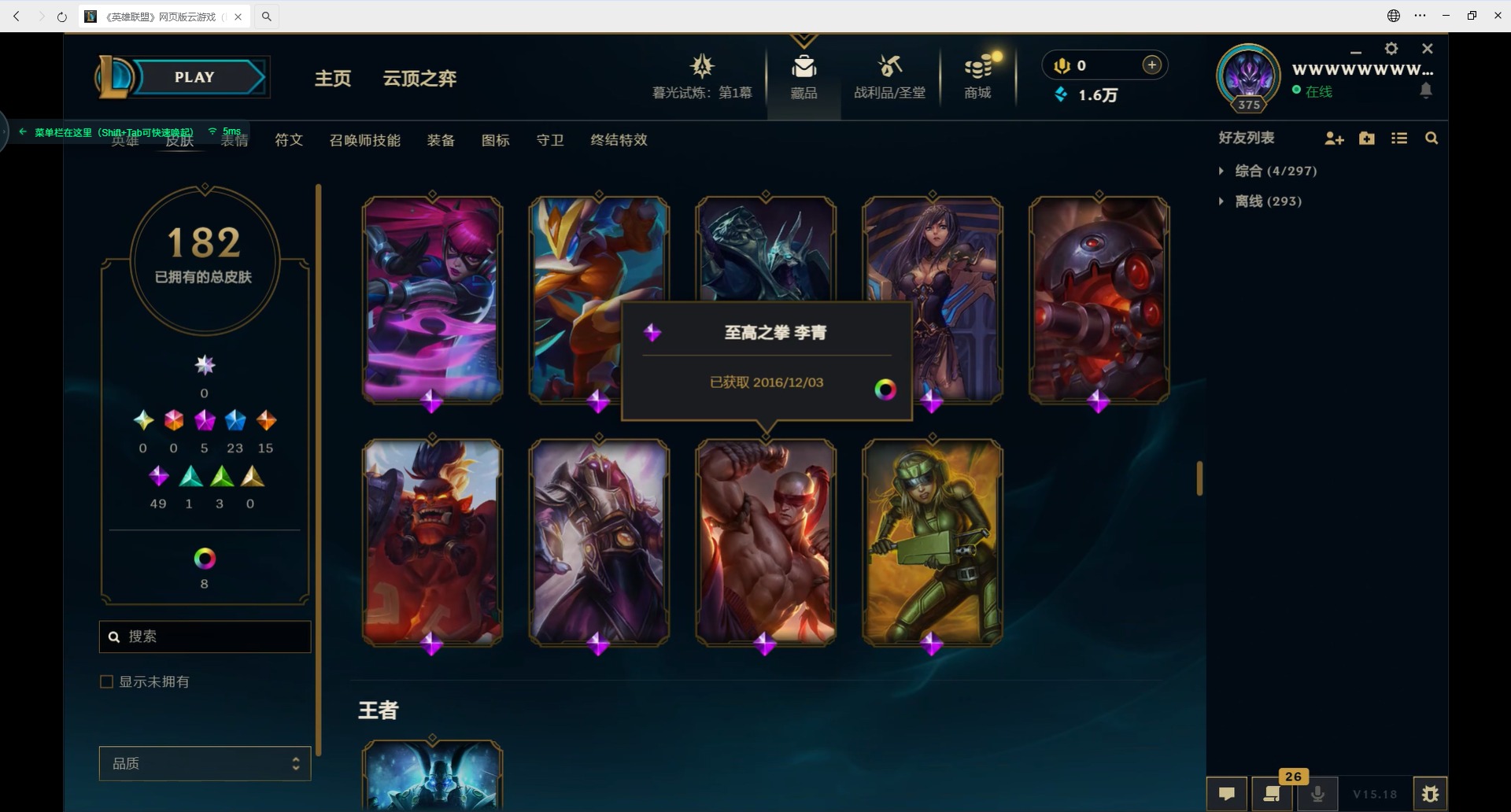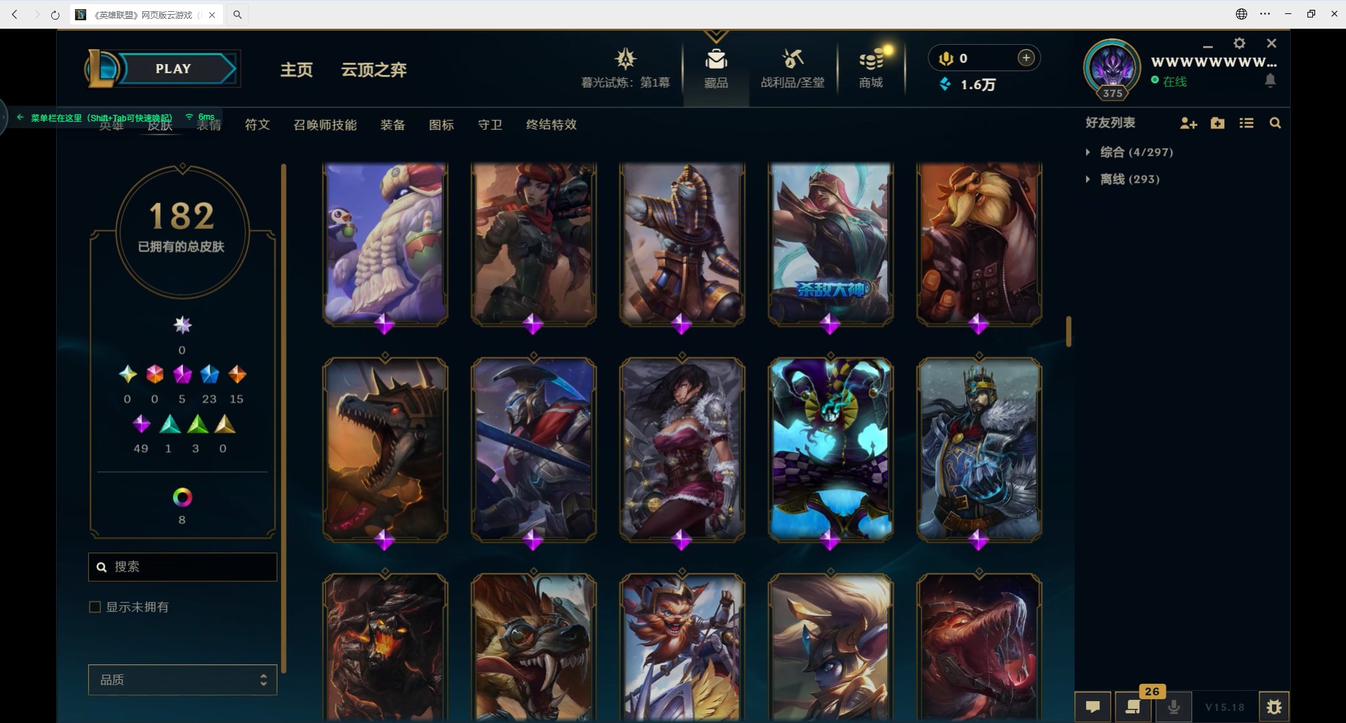 [12061861]5神话 23限定 15传说 49史诗 182皮肤 10炫彩 152英雄 可二次 可修改实名 优质装备:源代码 乐芙兰,防爆天使 凯尔,暗影 沃里克,都铎王朝 图奇,防爆士兵 炼金,钢铁之翼 凤凰,灰烬骑士 潘森,外星装甲 库奇,十五周年纪念 希维尔 赛季限定皮:胜利剑圣 易,胜利女神 娑娜 冠军限定系列:S2 暗杀星 努努,S4 SSW 图奇 冰雪节限定:“主人不要我了” 阿木木,胡桃夹子 小丑,平安夜女神 娑娜,魄罗骑士 瑟庄妮,圣诞精灵 崔丝塔娜,圣诞狂欢 努努,圣诞糖果棒 厄运小姐,雪默丁格,英勇玩具兵船长 万圣节限定:无头骑士 人马 年限:龙年 李青,蛇年 卡西奥佩娅,马年 锐雯 周年:10周年 安妮,10周年 凤凰