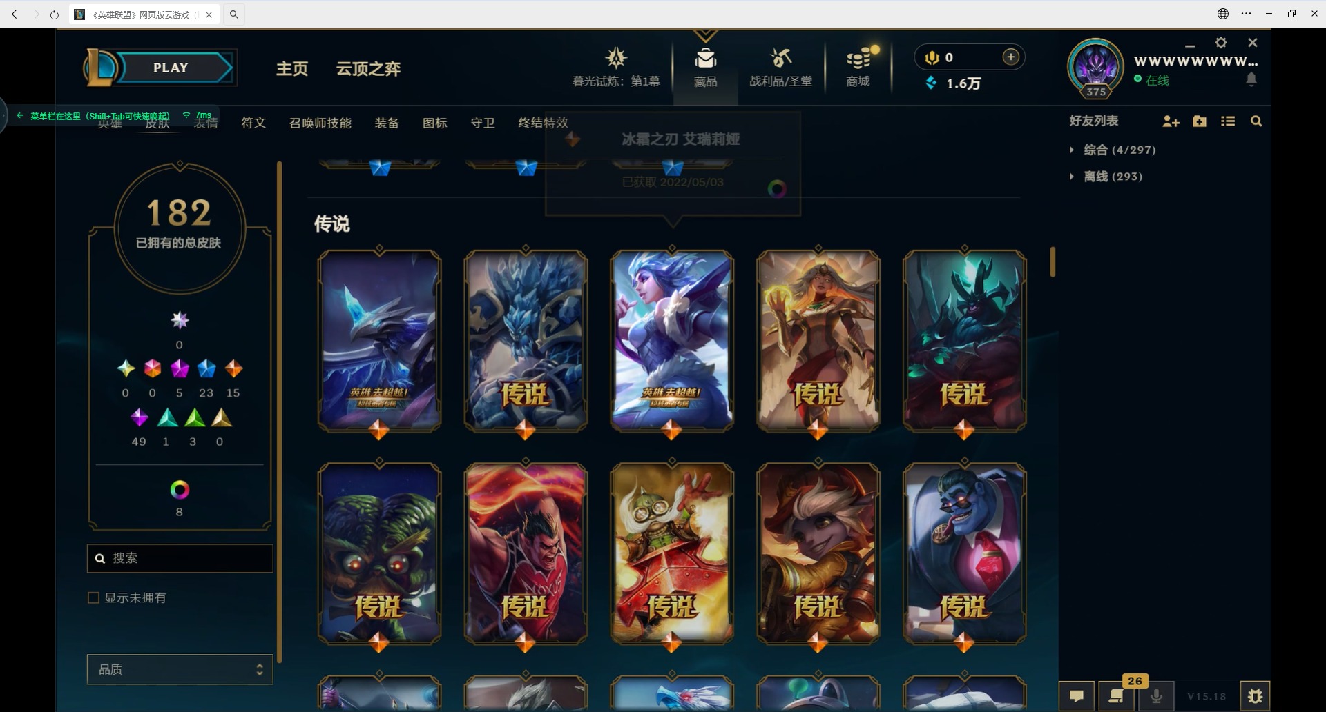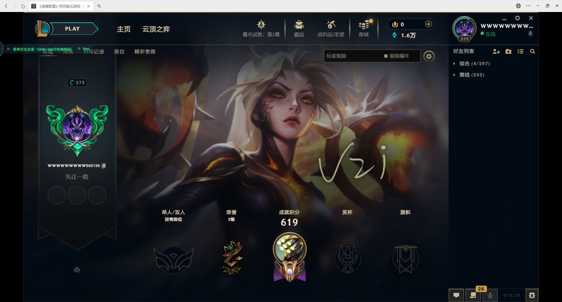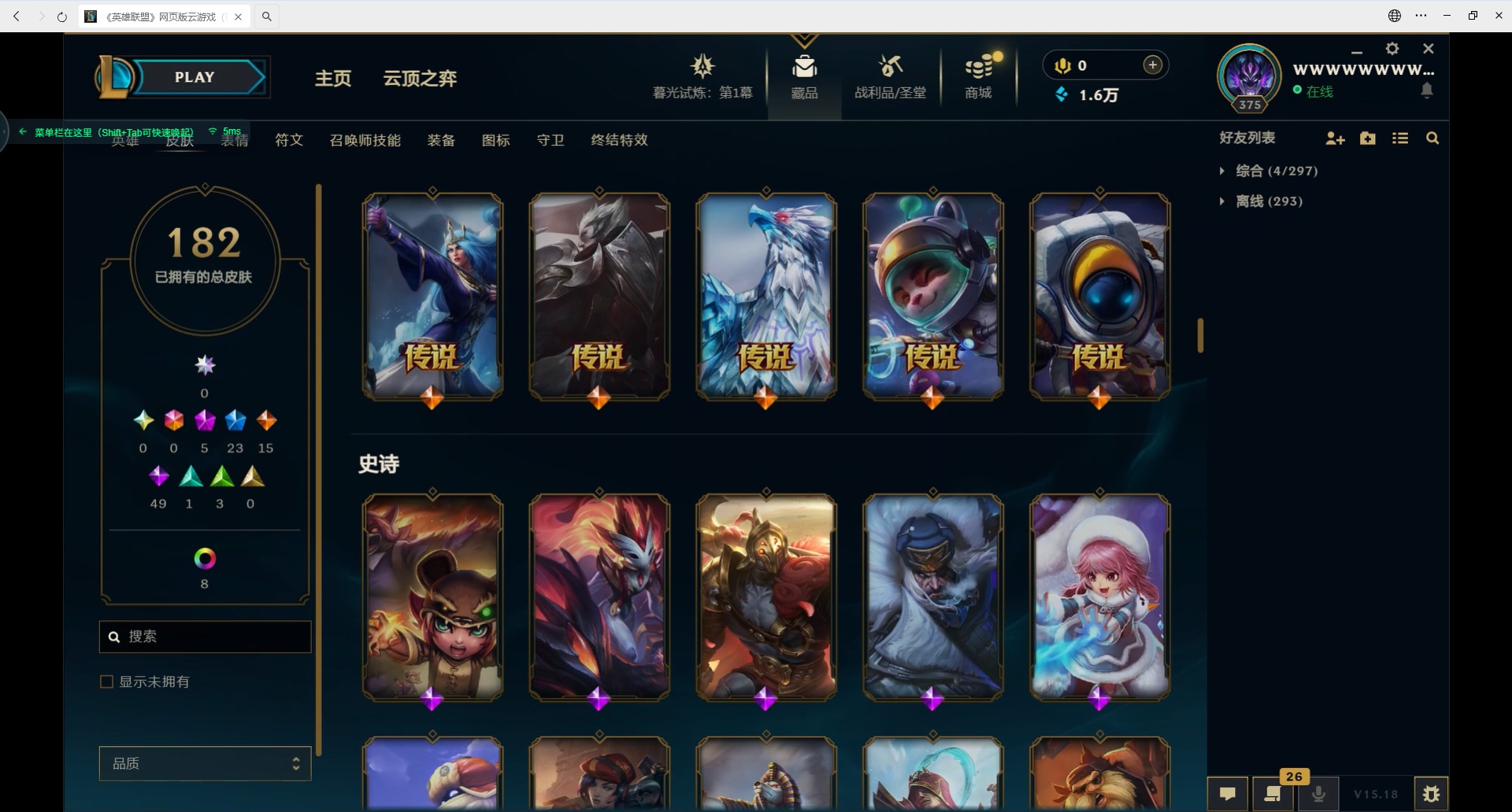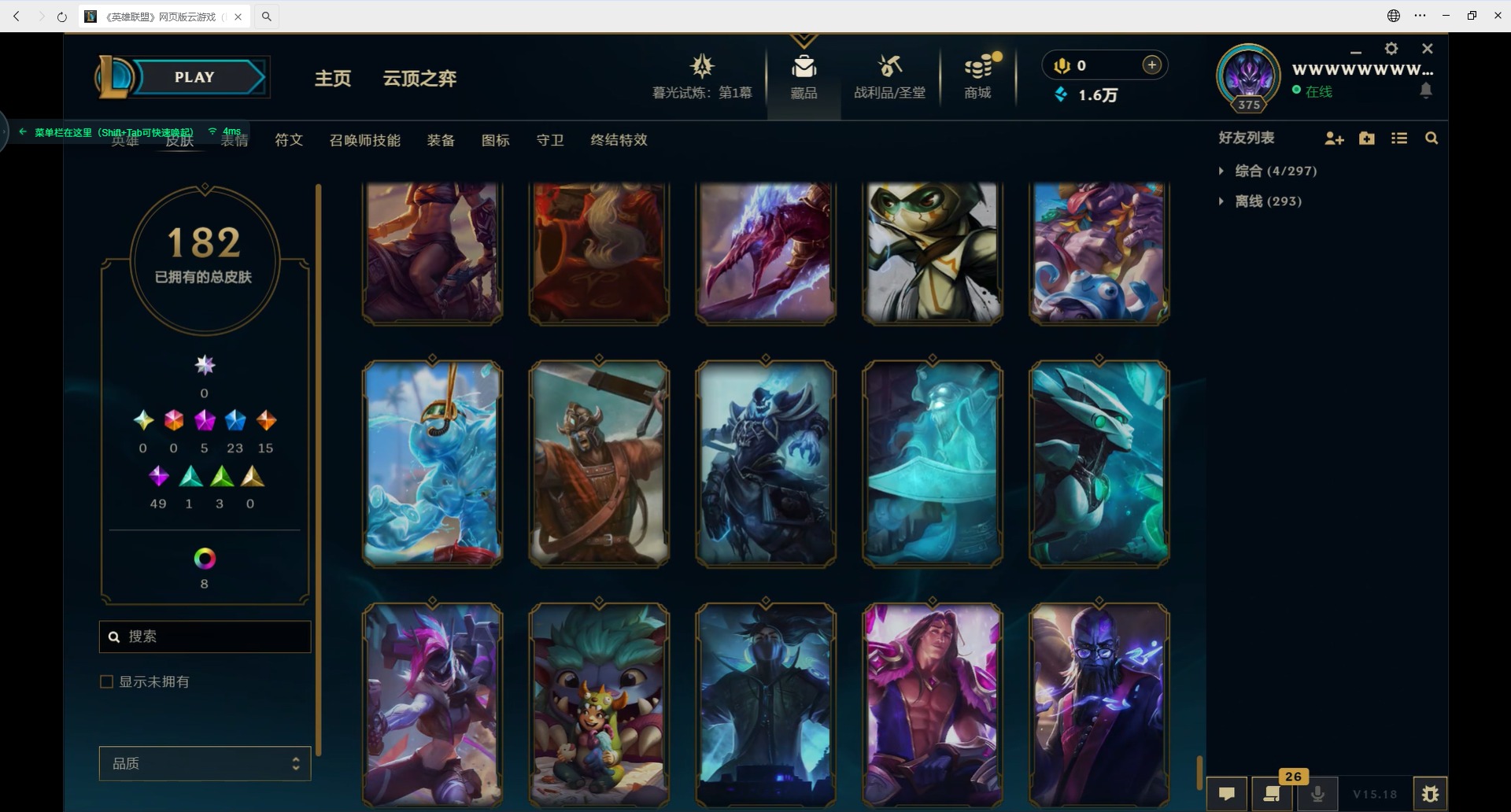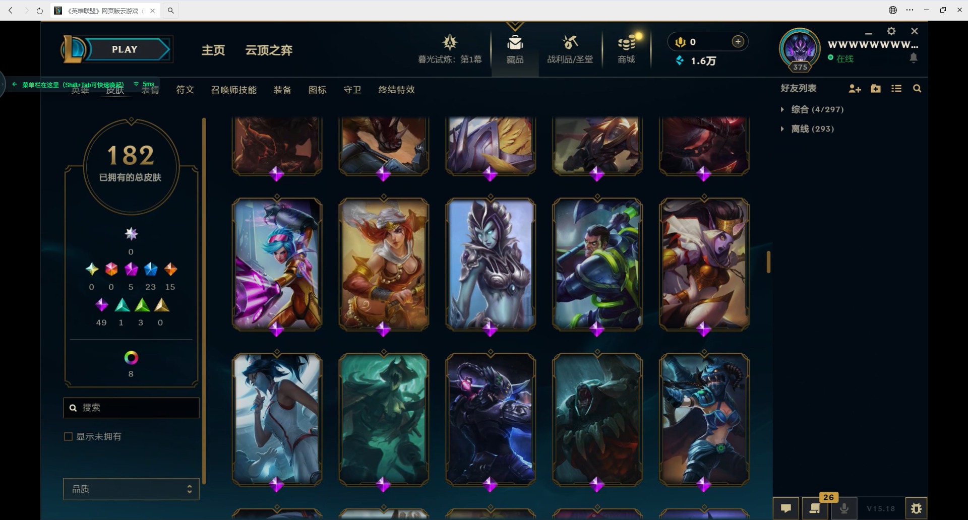 [12061861]5神话 23限定 15传说 49史诗 182皮肤 10炫彩 152英雄 可二次 可修改实名 优质装备:源代码 乐芙兰,防爆天使 凯尔,暗影 沃里克,都铎王朝 图奇,防爆士兵 炼金,钢铁之翼 凤凰,灰烬骑士 潘森,外星装甲 库奇,十五周年纪念 希维尔 赛季限定皮:胜利剑圣 易,胜利女神 娑娜 冠军限定系列:S2 暗杀星 努努,S4 SSW 图奇 冰雪节限定:“主人不要我了” 阿木木,胡桃夹子 小丑,平安夜女神 娑娜,魄罗骑士 瑟庄妮,圣诞精灵 崔丝塔娜,圣诞狂欢 努努,圣诞糖果棒 厄运小姐,雪默丁格,英勇玩具兵船长 万圣节限定:无头骑士 人马 年限:龙年 李青,蛇年 卡西奥佩娅,马年 锐雯 周年:10周年 安妮,10周年 凤凰